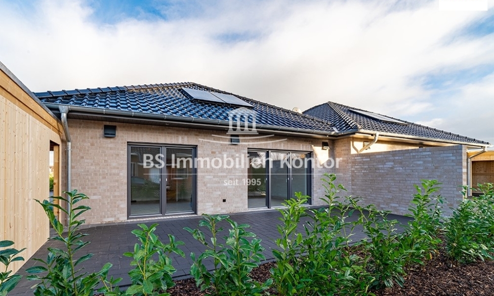 - Der baugleiche Musterbungalow ist bereits fertiggestellt.