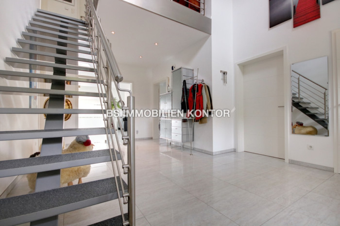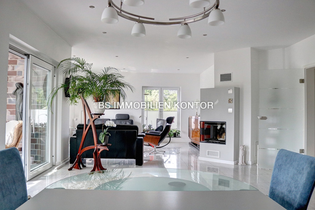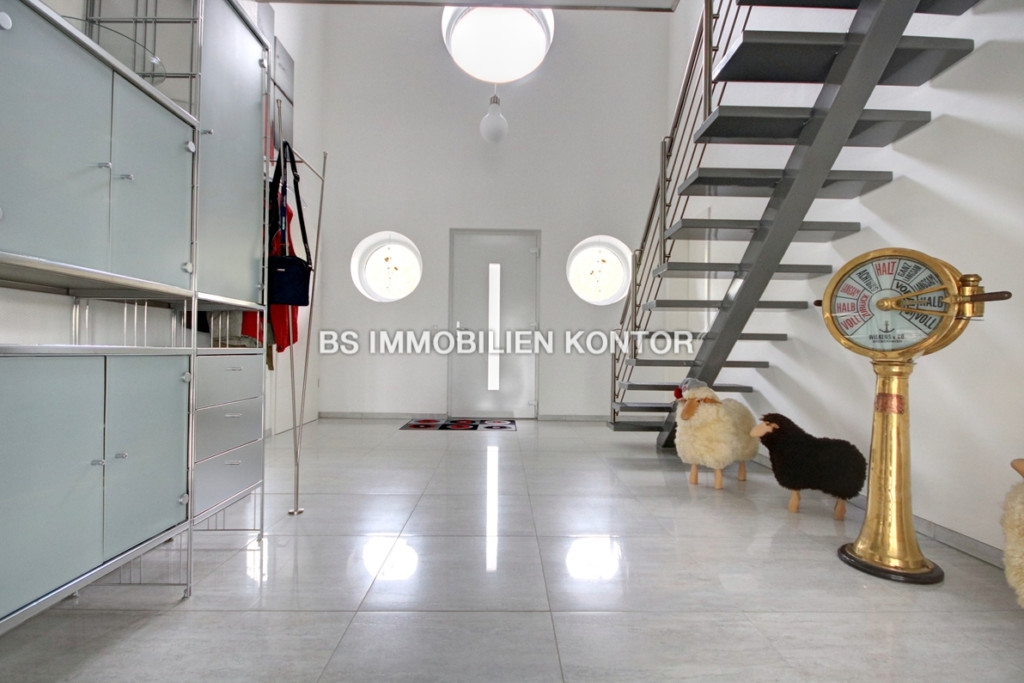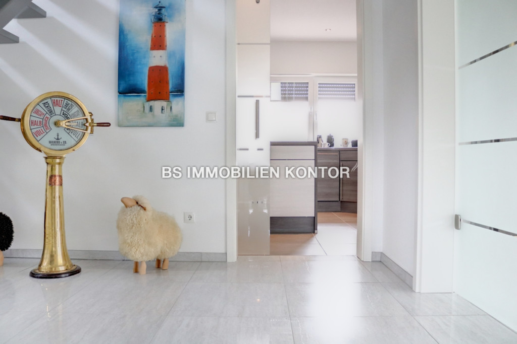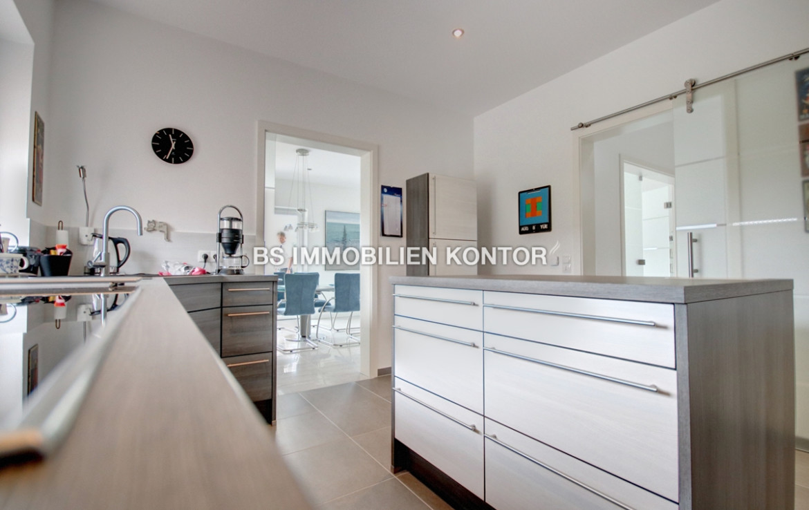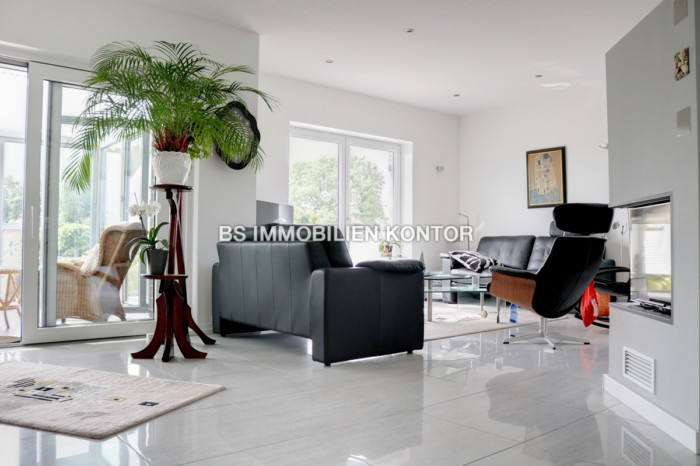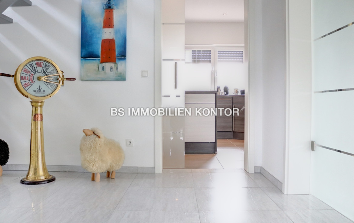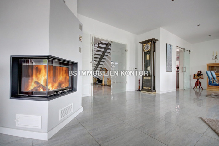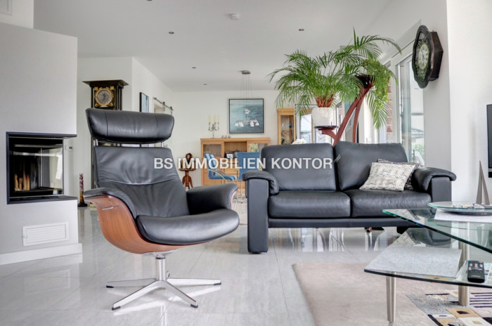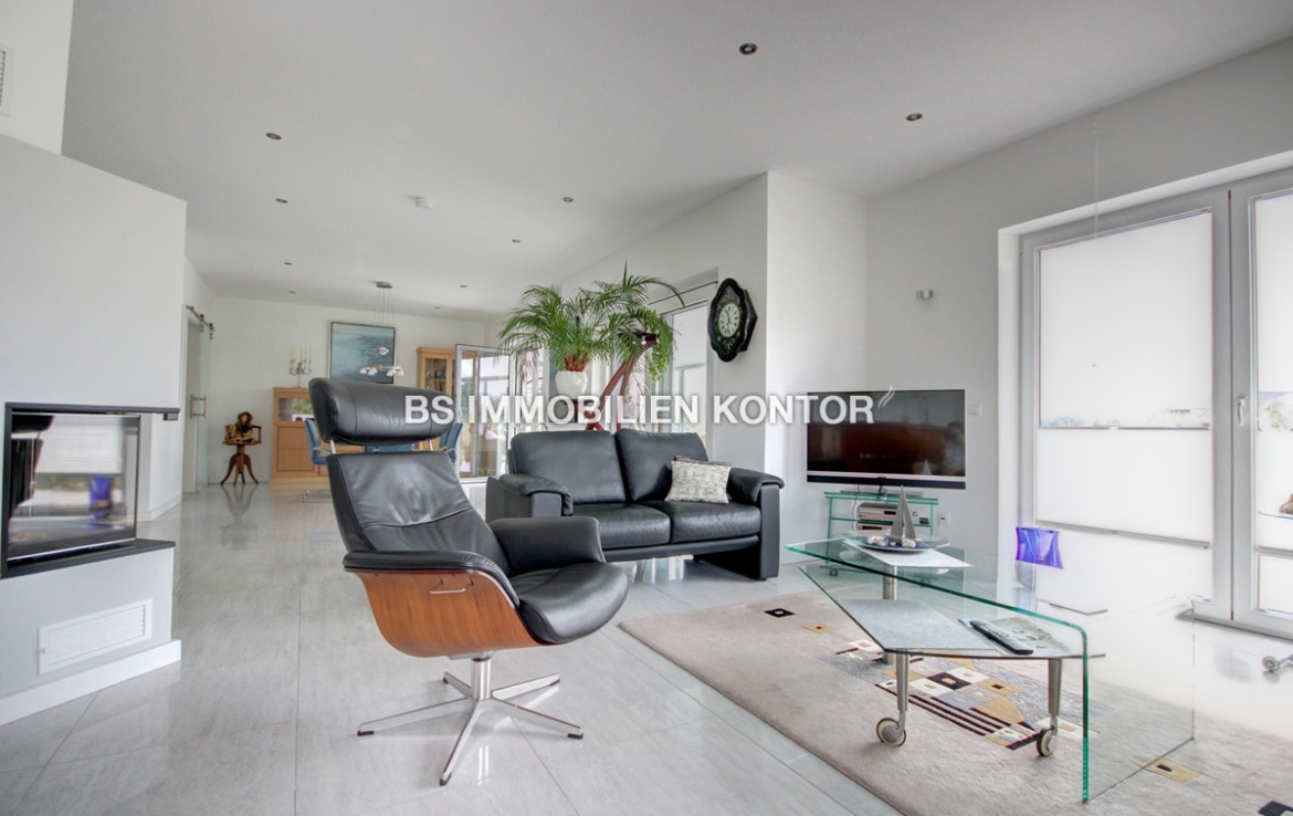 Diese neuwertige Traumimmobilie erfüllt hohe Wohnansprüche und überzeugt durch eine ruhige Wohnlage direkt am Wasser. Die Immobilie wurde im Jahr 2011 im Pagodenbaustil auf einem ca. 801qm großen Grundstück erstellt und ist in Verbundenheit mit seiner traumhaft ruhigen Wohnlage direkt am Wasser und den angelegten Ruhezonen attraktiv gestaltet. Dank der angegliederten Doppelgarage ist der Hauswirtschaftsraum trockenen Fußes begehbar. Beim Betreten des Objektes wird das stimmige Raum- und Designkonzept deutlich. Der großzügige, offen gestaltete Wohn-/Essbereich mit Kamin überzeugt durch eine charmevolle, lichtdurchflutete Raumgestaltung. Der am Wohn-/Essbereich angrenzende Wintergarten bietet einen herrlichen Blick aufs Wasser. Weiterhin befinden sich eine Küche, Schlafzimmer, Bad, Gäste WC und ein Hauswirtschaftsraum im Erdgeschoss. Im Obergeschoss stehen Ihnen zwei weitere Schlafzimmer, Bad und Abstellraum zur Verfügung. Die Kunststofffenster sind doppelverglast und mit elektrisch bedienbaren Jalousien ausgestattet. Eine Gas-Z-Heizung sowie eine Fußbodenheizung verleihen Ihnen eine angenehme Raumtemperatur. Für die Unterbringung von PKW`s steht Ihnen eine Doppelgarage zur Verfügung. Weitere Unterstellmöglichkeiten für z.Bsp. Gartengeräte, Fahrräder etc. bietet der Geräteraum. Eine elegante, zukunftsorientierte Immobilie für Menschen die eine ruhige Wohnlage bevorzugen und auf Wohnkomfort, wohnliches Ambiente und Flair nicht verzichten möchten.
