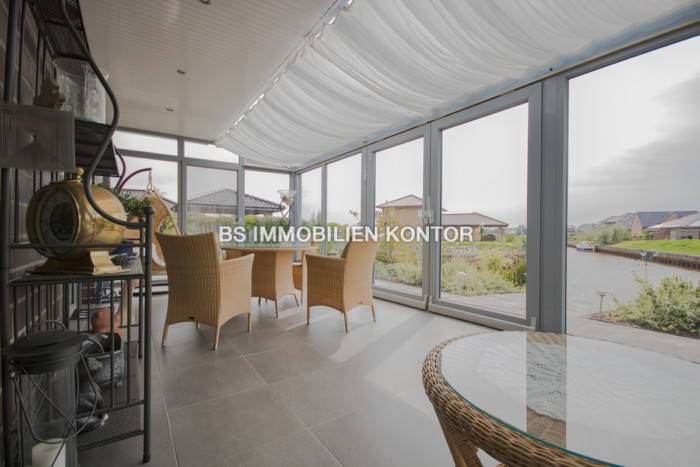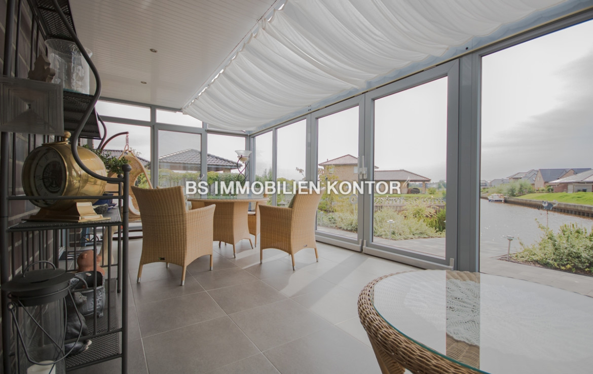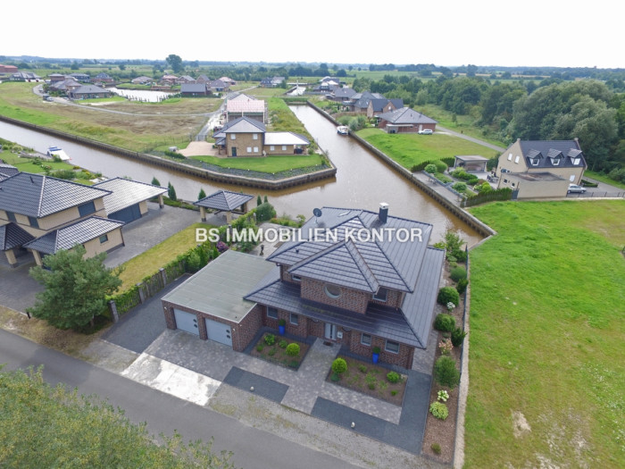 !!Achtung, direkt am Wasser gelegen!! Großes, neuw. EFH im Pagodenbaustil mit Doppelgarage, Geräteraum, eigenem Bootsanleger, Wintergarten und Terrasse in ruhiger Wohnlage - 26899 Rhede (Ems)