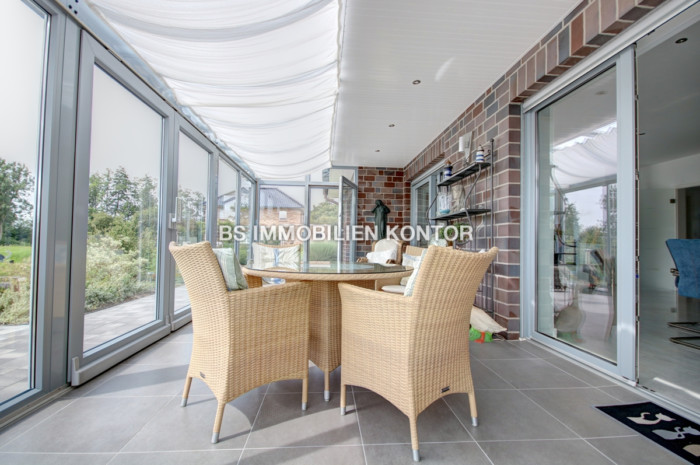 Objekt: !!Achtung, direkt am Wasser gelegen!! Großes, neuwertiges Einfamilienhaus im Pagodenbaustil mit Doppelgarage, Geräteraum, eigenem Bootsanleger, Wintergarten und Terrasse in ruhiger Wohnlage von Rhede