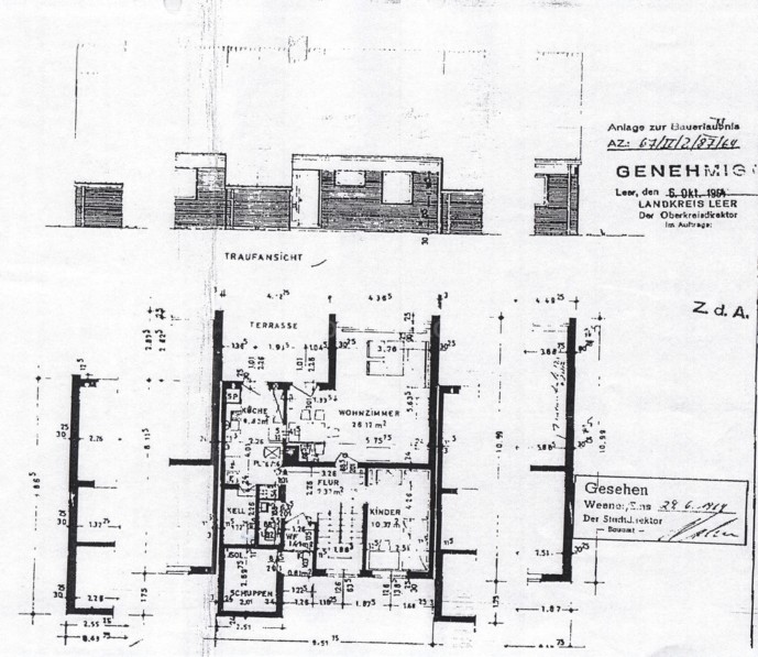 In einer ruhigen Wohnlage von Weener und nur unweit vom alten und neuen Yachthafen entfernt befindet sich dieses im Jahr 1966 erstellte Reihenendhaus. Das pflegeleichte Grundstück bemisst ca. 310 qm und verfügt über eine Terrasse (vom Wohnzimmer und von der Küche aus begehbar). Im ebenerdigen Bereich befinden sich ein Wohnzimmer, Küche, Gästezimmer, Gäste WC und Abstellraum. Das Obergeschoss verfügt über ein Elternschlafzimmer, zwei Kinderzimmer und Bad. Die weißen Kunststofffenster sind Iso-Vergl. und teilweise mit Jalousien ausgestattet. Beheizt wird das Objekt durch eine Gas-Z.- Heizung (Marke: Vaillant). Hervorzuheben ist die gute Verkehrsanbindung zur A-31 & A-28. Eine Immobilie für Menschen die eine ruhige Wohnlage bevorzugen und auf vielseitige Verwendungsmöglichkeiten nicht verzichten möchten.