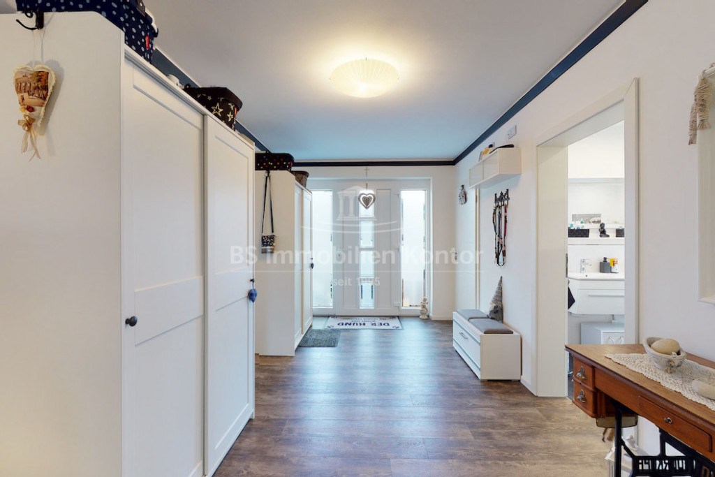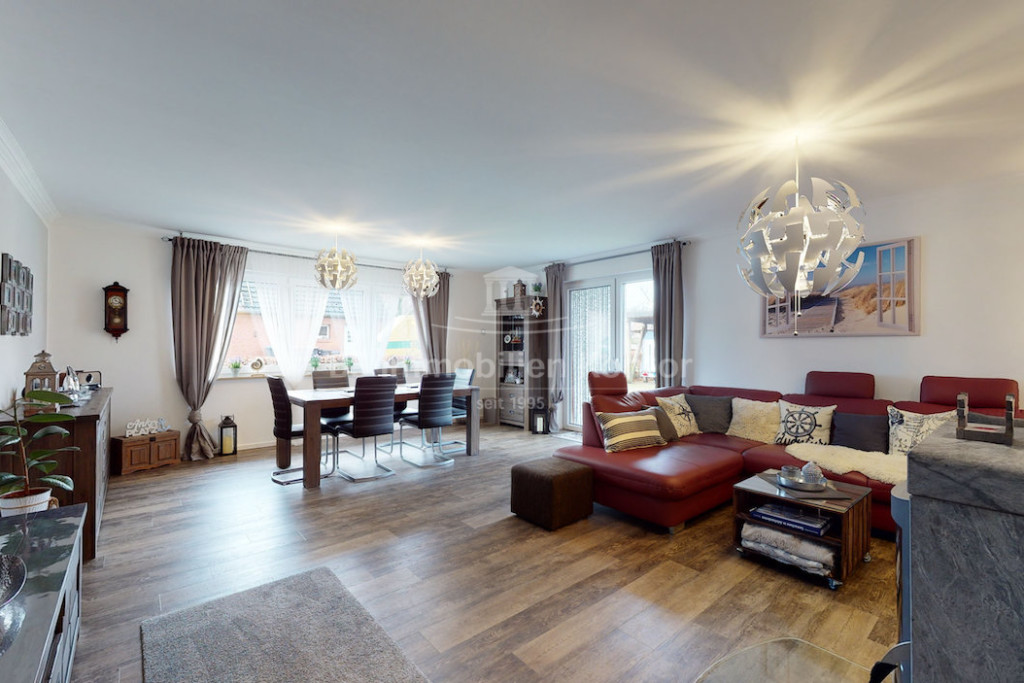 In einer ruhigen Wohnlage von Neubörger befindet sich dieser top gepflegte und sanierte Bungalow auf einem ca. 1.100qm großem Grundstück. Die Immobilie wurde im Jahre 1984/85 erbaut und im Jahre 2020 umfassend saniert. Folgende Arbeiten wurden beispielsweise durchgeführt: Garagendach, Erneuerung der Elektrik, Innentüren sowie die Bodenbeläge. Im September 2021 wurde das Dachgeschoss bis in die Schräge gedämmt. Das Erdgeschoss erstreckt sich aus dem Flur/Diele, Küche, gr. Wohn-/Essbereich, Schlafzimmer, Büro/Schlafzimmer, Heizungsraum, Duschbad und dem Vollbad. Im Obergeschoss befindet sich eventuell eine zusätzliche Ausbaureserve (Betondecke ist vorhanden). Die weißen Kunststofffenster sind Iso-Vergl. und mit elektrisch bedienbaren Jalousien ausgestattet. Beheizt wird die Immobilie mit einer Gas-Z.-Heizung (Fußbodenheizung, Installiert: 2020). Der Kamin beschert Ihnen eine angenehme Wohlfühlatmosphäre. Für die Unterbringung Ihres PKWs und Ihres Wohnmobils steht Ihnen eine Garage (PKW), ein Carport und ein Wohnmobilstellplatz zur Verfügung. An Sommertagen lädt die Grillecke und im Laufe des Abends die Blockhütte zum gemütlichen Beisammen sein ein. Eine Immobilie für Menschen, die auf eine top gepflegte, altersgerechte Immobilie und auf eine ruhige Lage nicht verzichten möchten.