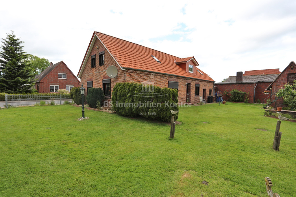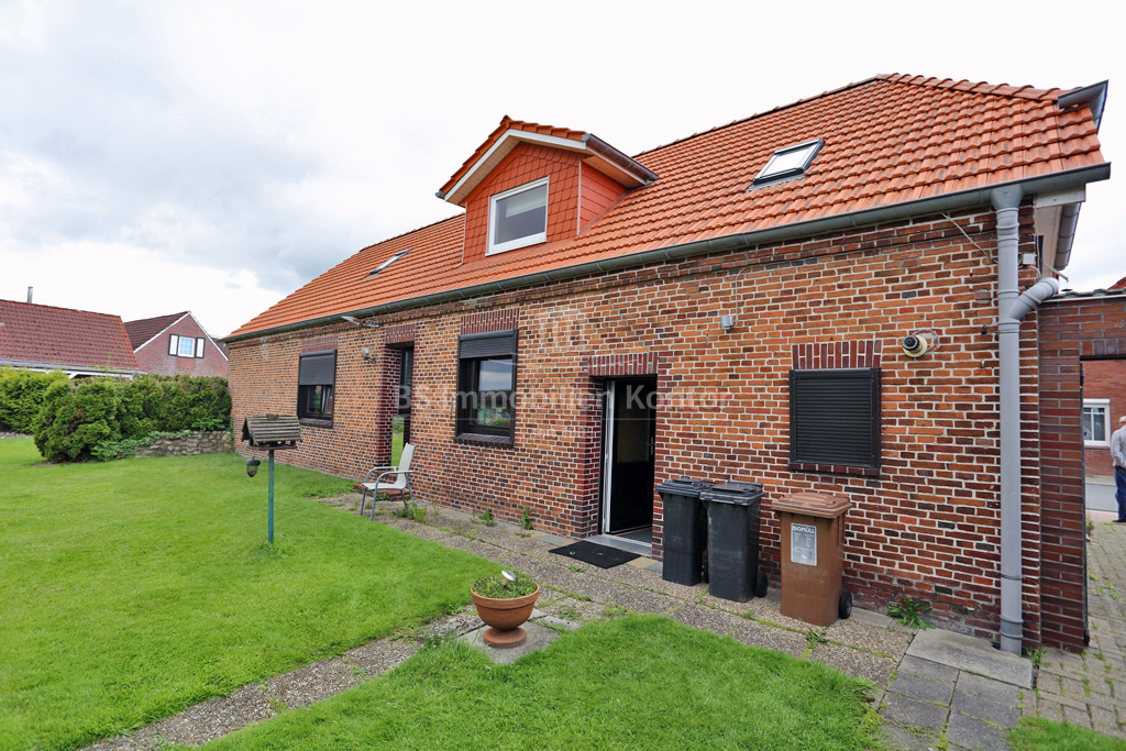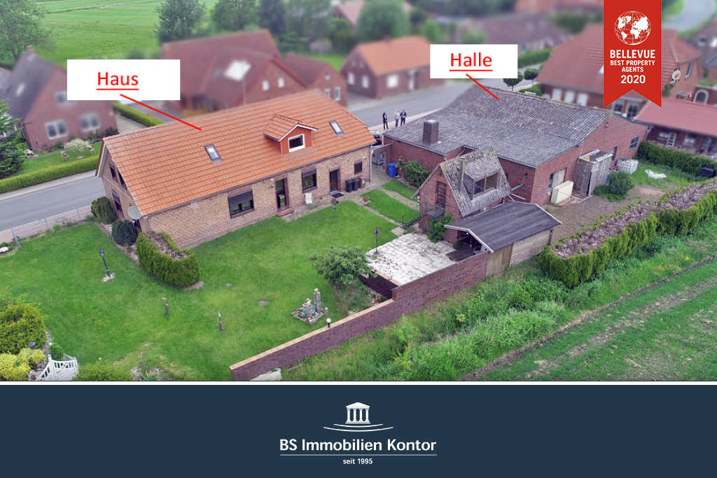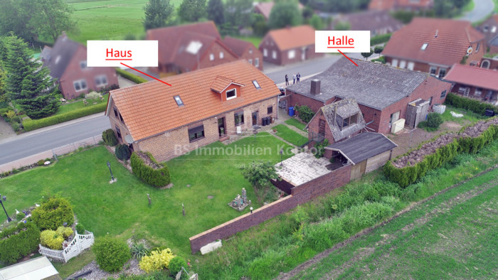 Sie suchen eine großzügige Immobilie in ländlicher Lage? Hier werden Sie fündig. Dieses Immobilienangebot präsentiert sich in ruhiger, idyllischer Wohnlage und überzeugt mit einem großzügigen Platzangebot und einer sep. Halle. Das Einfamilienhaus wurde ca. 1952 (genaues BJ unbekannt) in konventioneller Massivbauweise mit einem Satteldach erstellt. Die Halle wurde in den ca. in den 1970er Jahren erstellt. Genießen Sie den Charme Ostfrieslands auf einem ca. 1.033qm großen Grundstück. Die weißen Kunststofffenster sind Isolierverglast und mit Jalousien ausgestattet. Beheizt wird die Immobilie durch eine Gas-Z.-Heizung.