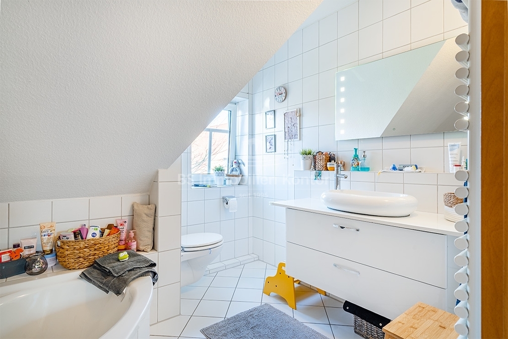 OG: Flur/Diele, Badezimmer mit gr. Badewanne, 2x Kinderzimmer, Elternschlafzimmer