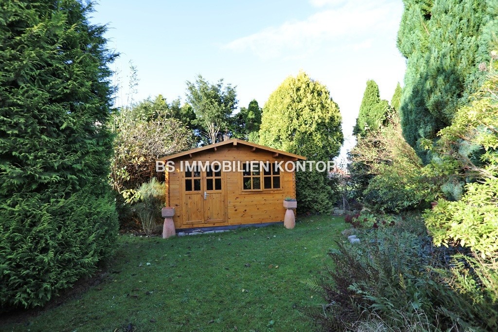 Grundstück: ca. 836 qm (Gartenanlage, Terrasse, Blockhaus, Rasenfläche)