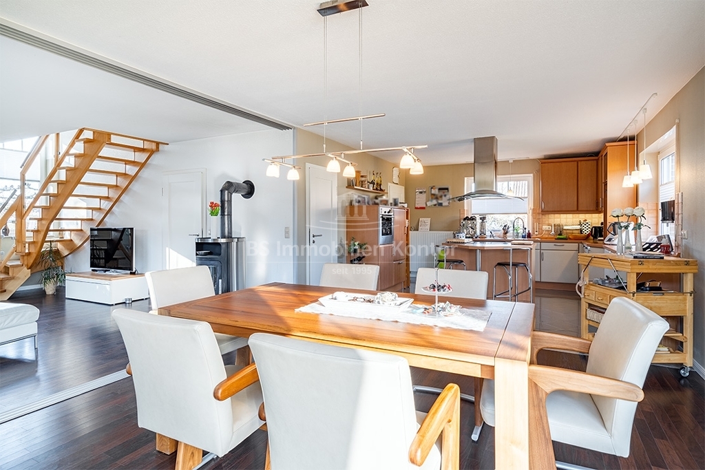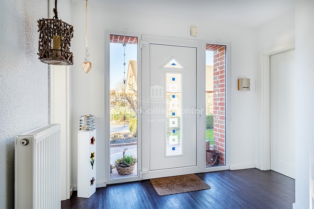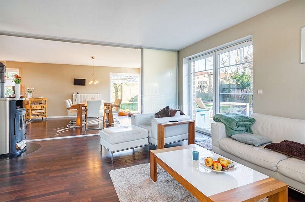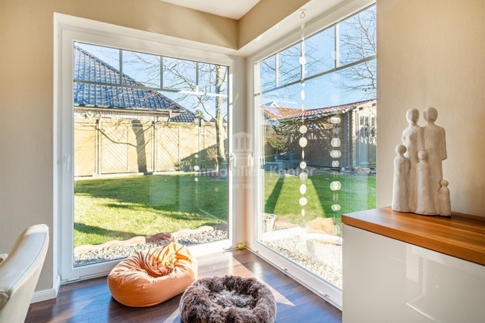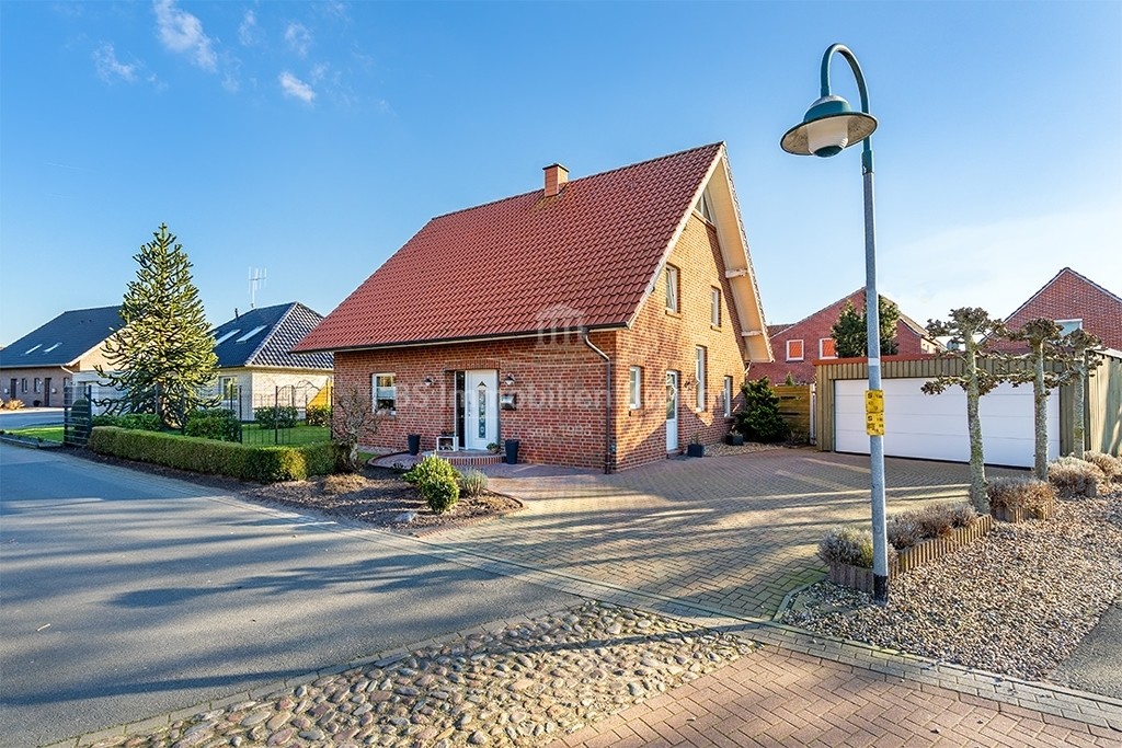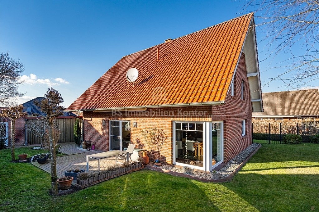 Dieses Immobilienangebot präsentiert sich in ruhiger Lage von Weener und bietet Platz für die gesamte Familie. Die Immobilie besticht durch die gelungene Architektur, die sich sowohl von außen als auch in der Raumaufteilung wiederfindet. Das gepflegte Einfamilienhaus wurde im Jahr 2001 in konventioneller Massivbauweise mit einem Satteldach erstellt. Treten Sie ein in den ansprechenden Eingangsbereich, der Sie direkt in den Wohnraum führt. Hier erwartet Sie das Herzstück dieser Immobilie, der gemütliche, offene Wohn- und Essbereich mit gr. Schiebeelementen als Raumteiler. Besonders schön ist der Küchenbereich, der sich geschmacksvoll einfügt. Die Süd-Terrasse ist mit einer elektrischen, großzügigen Markise ausgestattet. Genießen Sie den Sonnenuntergang und erholen Sie sich von Ihrem Alltag. Das Eigentumsgrundstück bemisst ca. 640qm und liegt in einer ruhigen, bevorzugten Siedlungslage von Weener. Die weißen Kunststofffenster sind Iso/-Sprossenverglast und mit Jalousien ausgestattet. Beheizt wird die Immobilie mit einer Gas-Z.-Heizung. Eine Immobilie für Menschen die Wohnqualität mit Lebensqualität verbinden und auf die Nähe zur Stadt Leer und eine gute Verkehrsanbindung nicht verzichten möchten.