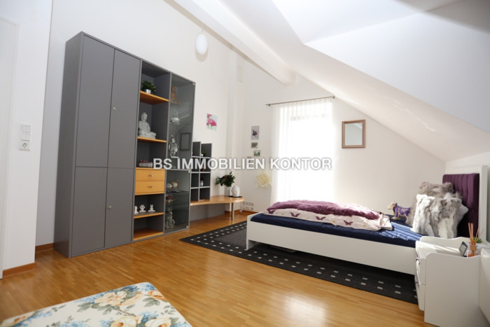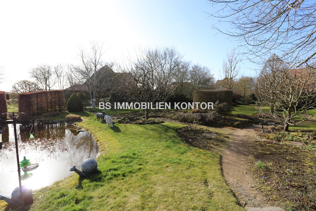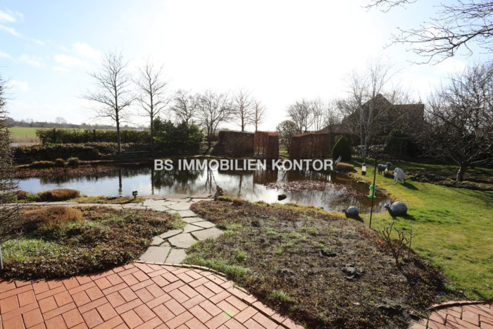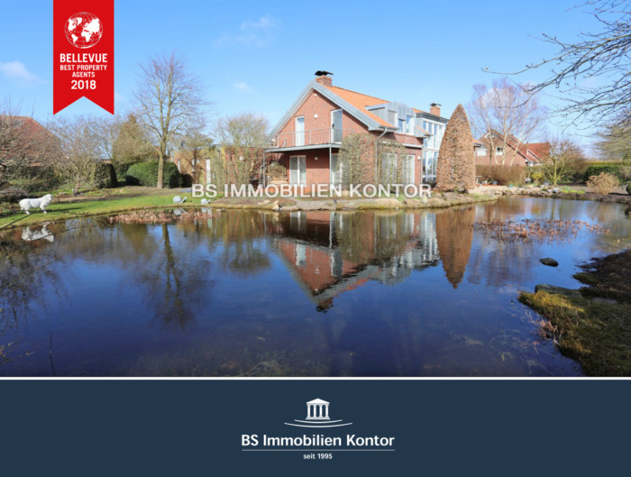 Sie suchen das Besondere und wissen diese seltene Gelegenheit zu schätzen? Dieses repräsentative Architektenhaus wurde 1998 in Massivbauweise in moderner, puristischer Architektur mit einem Satteldach und handgearbeiteten Designerdachgauben erstellt. Die Immobilie präsentiert sich auf einem ca. 2.673 qm großen Grundstück und lässt keine Wünsche offen. Das Einfamilienhaus inkl. großer Teichanlage wurde auf einem großzügigen Grundstück unter Leitung eines renommierten Architekten errichtet. Es besteht die Möglichkeit einen sep. angrenzenden Bauplatz zur Größe von ca. 742 qm dazu zu erwerben (vgl. Luftbild; rot schraffiert). Die gehobene Ausstattung in Verbindung mit dem offenen Wohncharakter runden das Bild dieser Immobilie ab. Beheizt wird das Objekt durch eine Gas-Zentral-Heizung (Fußbodenheizung). Für zusätzliche Wärme sorgt ein Kaminofen im Wohnbereich. Einen beeindruckenden Wasserblick in die Gartenanlage gewährt Ihnen der Essbereich durch einen großzügigen, verglasten Erker. Die weißen Metallfenster sind abschließbar und mit Isolierverglasung ausgestattet. Eine Immobilie für Menschen die Wohnqualität mit Lebensqualität verbinden und dieses besonders seltene Angebot zu schätzen wissen.