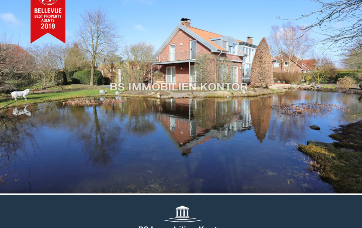 Einmalige Gelegenheit in Kanallage! Top gepflegtes Architektenhaus mit gehob. Ausstattung, Terrasse, Parkanlage und D-Garage! - 26759 Hinte