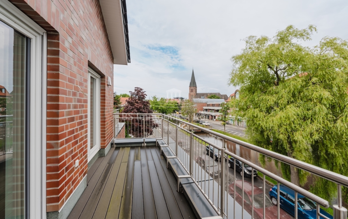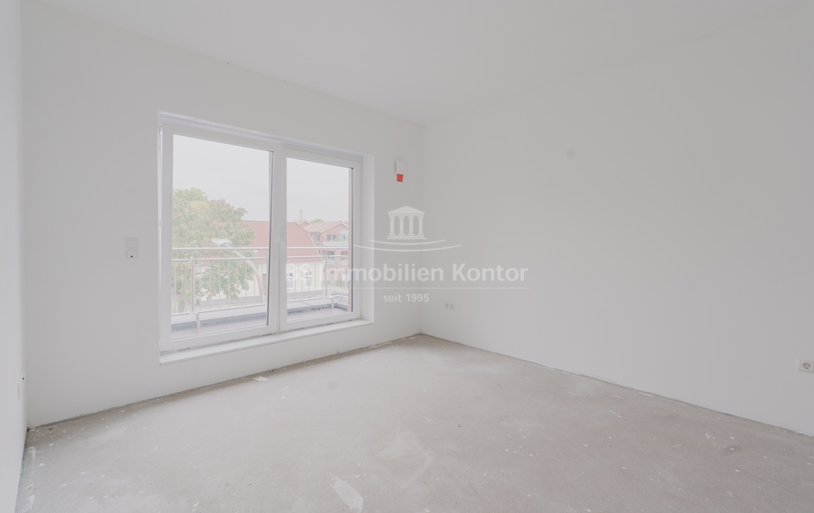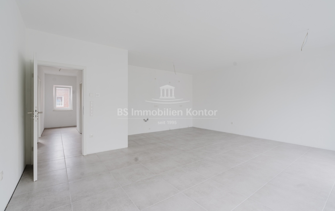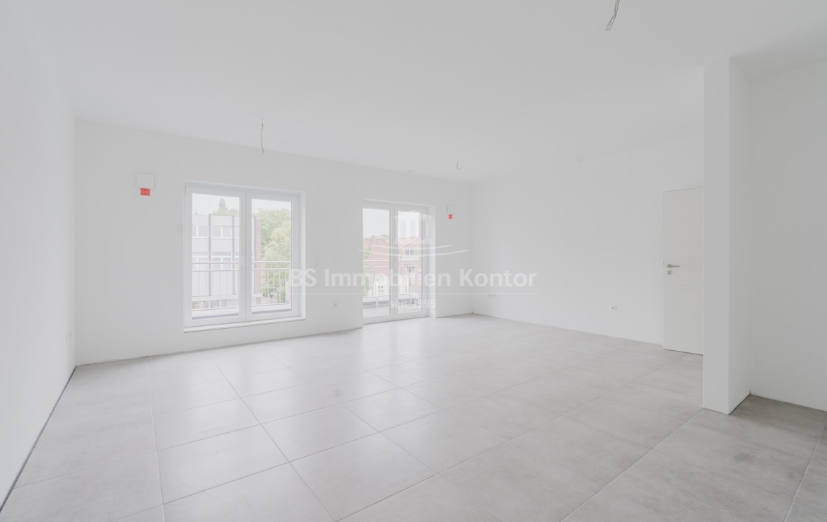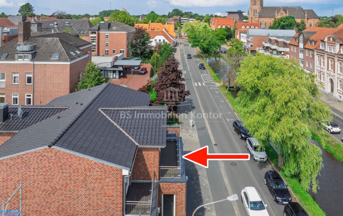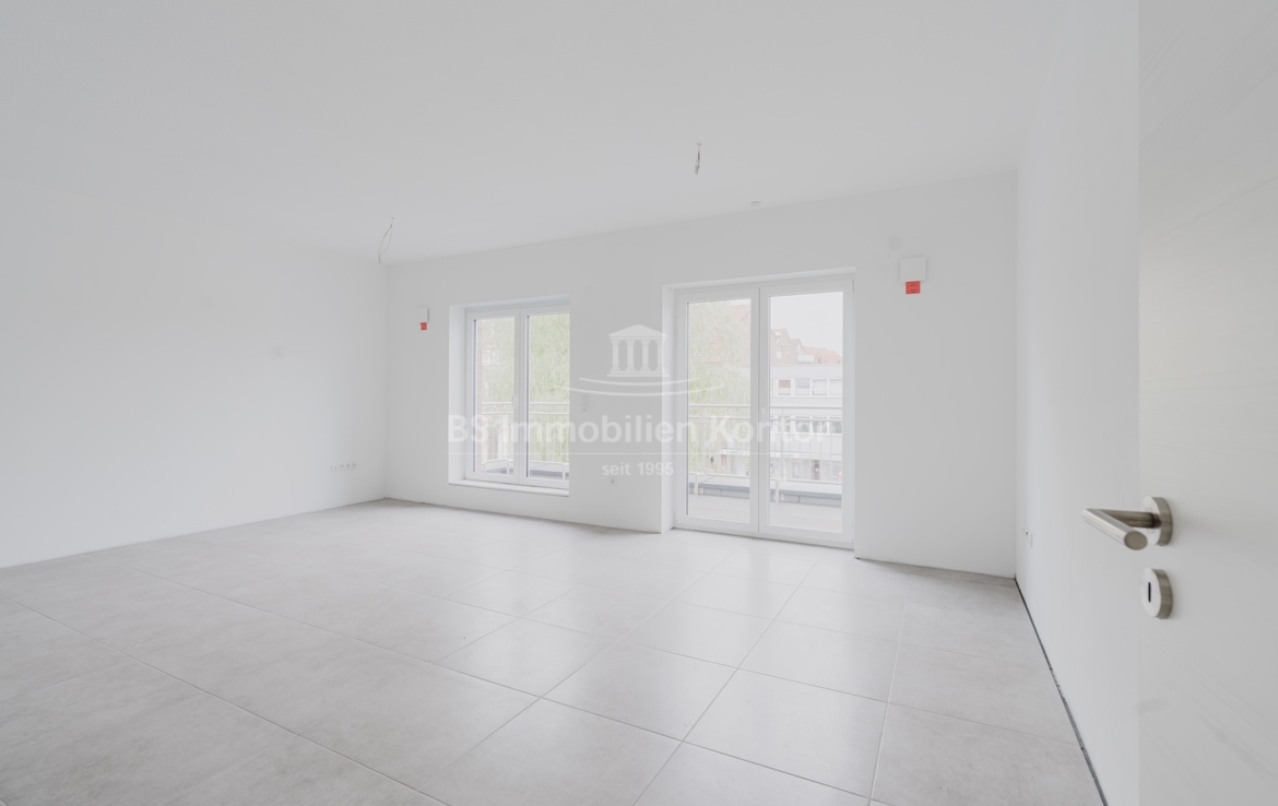 Diese hochwertige Penthouse-Wohnung befindet sich in einem modernen Neubau in zentraler Lage von Papenburg und überzeugt durch ihre gehobene Ausstattung, einen klar strukturierten Grundriss und ein außergewöhnliches Wohnambiente. Auf einer großzügigen Wohnfläche von 91,99 m² erwartet Sie ein offener Wohn-, Ess- und Kochbereich, der durch große Fensterflächen lichtdurchflutet ist und direkten Zugang zu einem sonnigen Balkon bietet – ideal für entspannte Stunden im Freien mit Ausblick über die Stadt. Zwei gut geschnittene Schlafzimmer bieten ausreichend Platz für erholsamen Schlaf und individuelle Gestaltungsmöglichkeiten. Eines der Schlafzimmer verfügt über einen eigenen Balkon – ein besonderes Highlight, das zu entspannten Morgenmomenten einlädt. Das stilvolle Badezimmer ist mit einer bodengleichen Dusche, einem modernen Waschtisch und WC ausgestattet. Ergänzt wird das Raumangebot durch einen praktischen Hauswirtschaftsraum mit Anschlüssen für Waschmaschine und Trockner sowie einen zentral gelegenen Flur, der alle Räume optimal verbindet. Die Beheizung erfolgt über eine effiziente Luft-Wärmepumpe, was nicht nur umweltfreundlich, sondern auch kostensparend ist. Zur Wohnung gehört außerdem ein eigener PKW-Stellplatz direkt am Haus. Die Wohnung befindet sich im Dachgeschoss (Penthouse-Etage) eines Neubaus und ist bezugsbereit. Sie eignet sich ideal für anspruchsvolle Paare, Einzelpersonen oder Kapitalanleger, die Wert auf modernes Wohnen mit besonderem Flair legen.