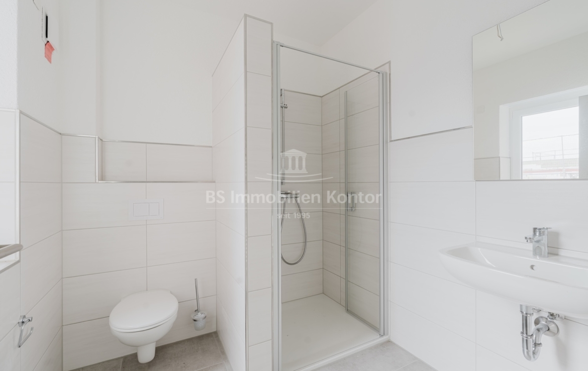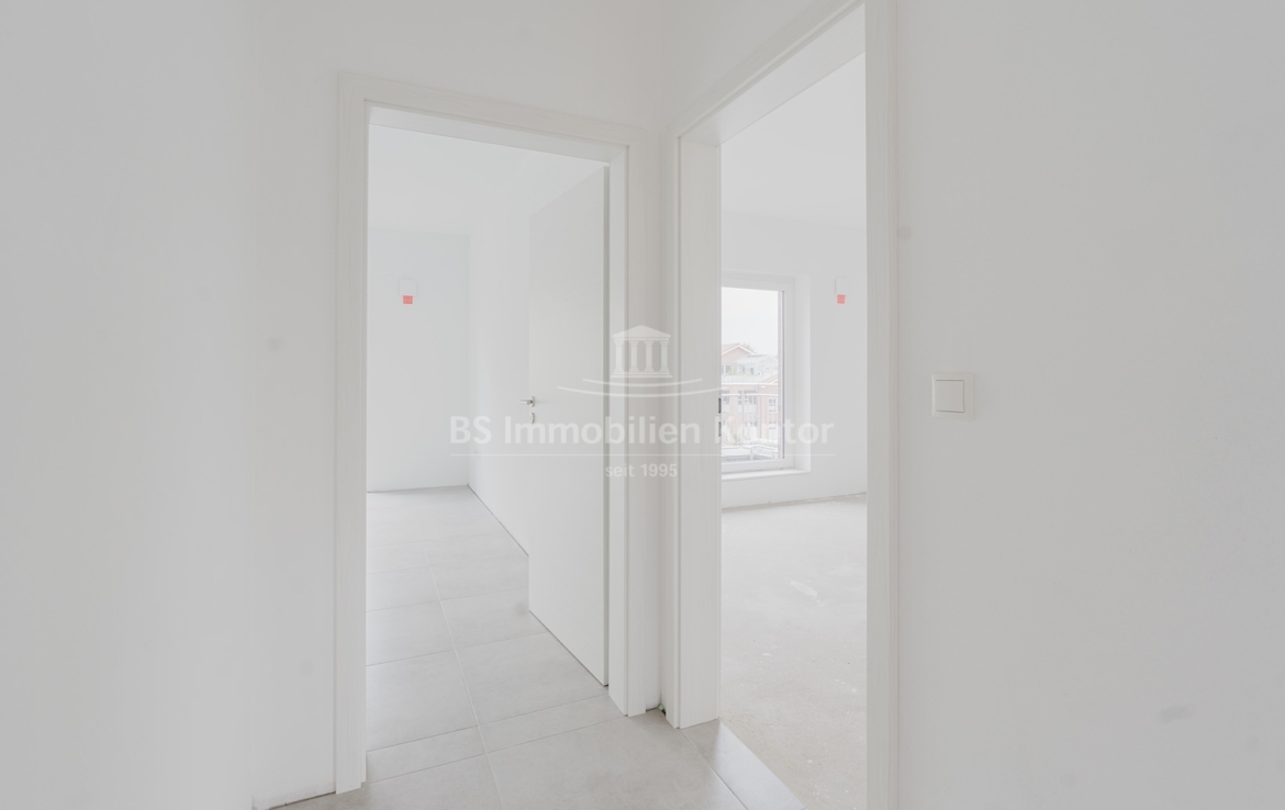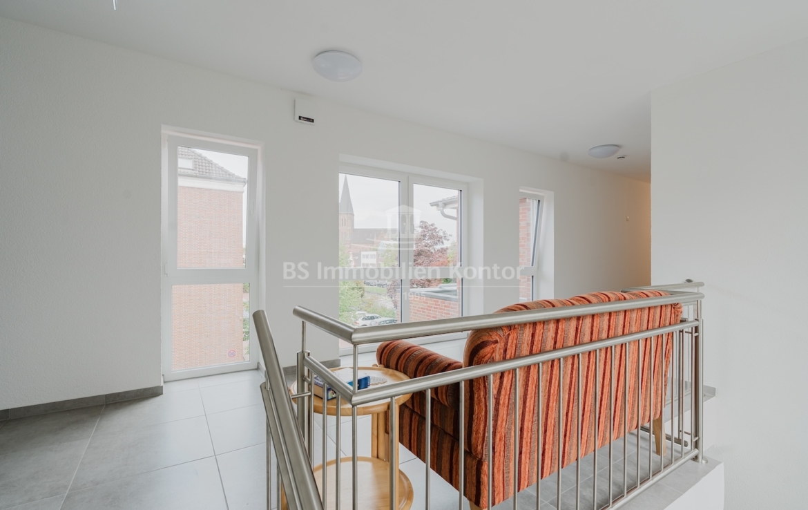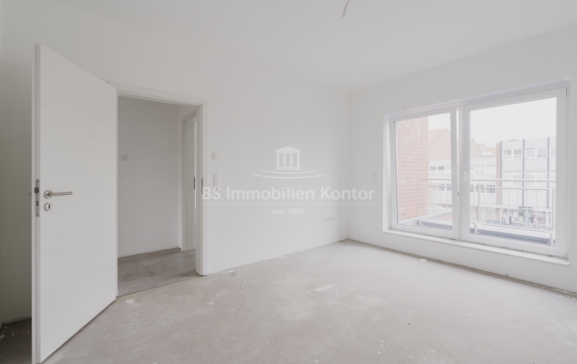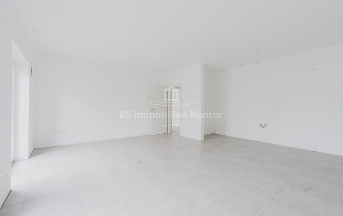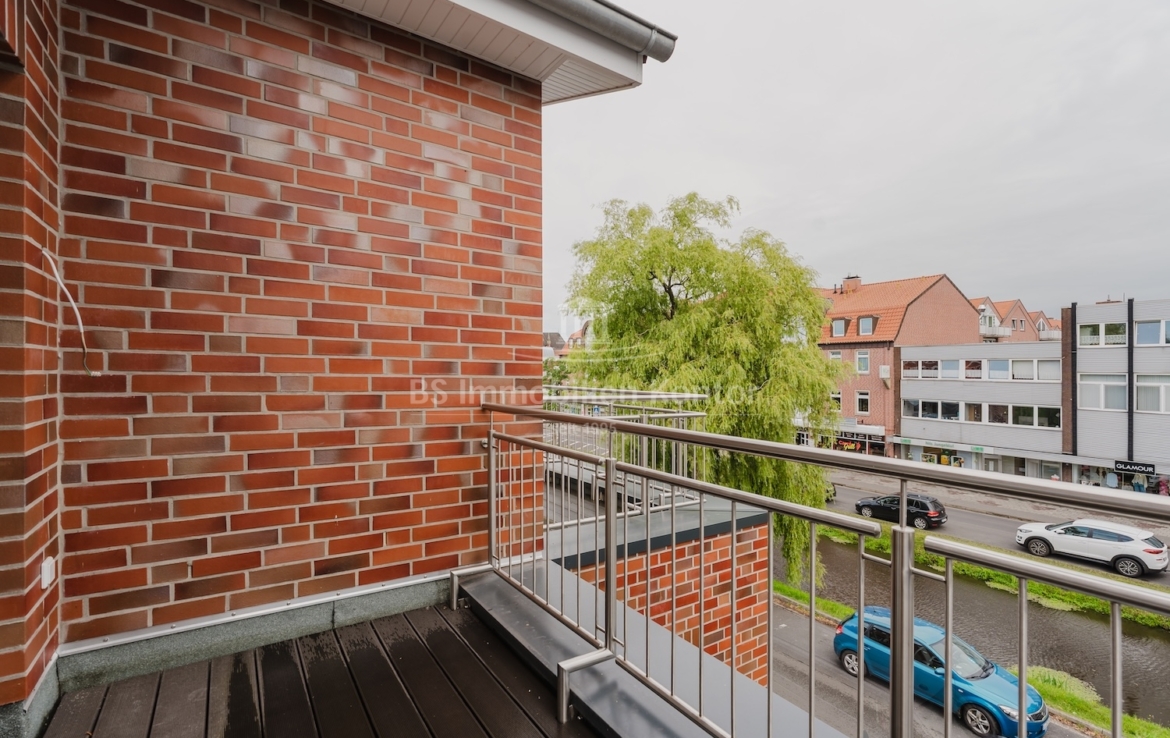 Diese hochwertige Penthouse-Wohnung befindet sich in einem modernen Neubau in zentraler Lage von Papenburg und überzeugt durch ihre gehobene Ausstattung, einen klar strukturierten Grundriss und ein außergewöhnliches Wohnambiente. Auf einer großzügigen Wohnfläche von 91,99 m² erwartet Sie ein offener Wohn-, Ess- und Kochbereich, der durch große Fensterflächen lichtdurchflutet ist und direkten Zugang zu einem sonnigen Balkon bietet – ideal für entspannte Stunden im Freien mit Ausblick über die Stadt. Zwei gut geschnittene Schlafzimmer bieten ausreichend Platz für erholsamen Schlaf und individuelle Gestaltungsmöglichkeiten. Eines der Schlafzimmer verfügt über einen eigenen Balkon – ein besonderes Highlight, das zu entspannten Morgenmomenten einlädt. Das stilvolle Badezimmer ist mit einer bodengleichen Dusche, einem modernen Waschtisch und WC ausgestattet. Ergänzt wird das Raumangebot durch einen praktischen Hauswirtschaftsraum mit Anschlüssen für Waschmaschine und Trockner sowie einen zentral gelegenen Flur, der alle Räume optimal verbindet. Die Beheizung erfolgt über eine effiziente Luft-Wärmepumpe, was nicht nur umweltfreundlich, sondern auch kostensparend ist. Zur Wohnung gehört außerdem ein eigener PKW-Stellplatz direkt am Haus. Die Wohnung befindet sich im Dachgeschoss (Penthouse-Etage) eines Neubaus und ist bezugsbereit. Sie eignet sich ideal für anspruchsvolle Paare, Einzelpersonen oder Kapitalanleger, die Wert auf modernes Wohnen mit besonderem Flair legen.