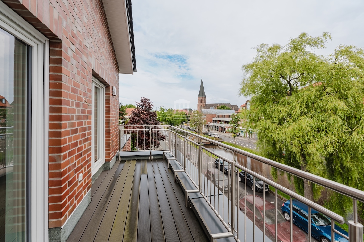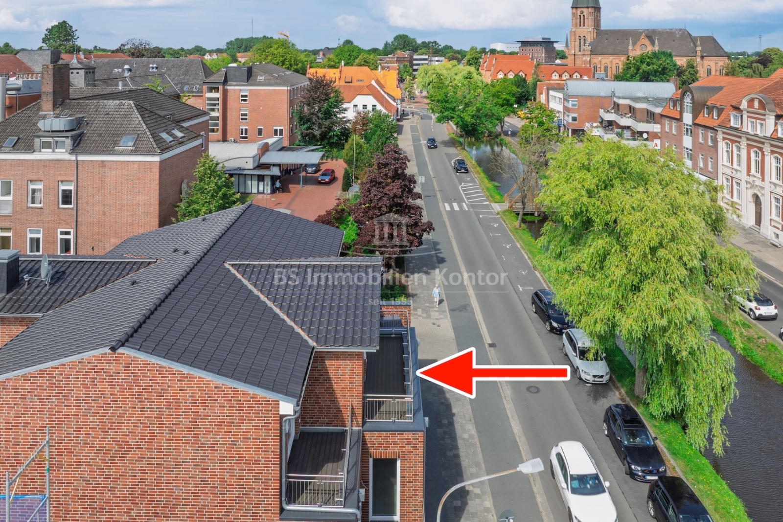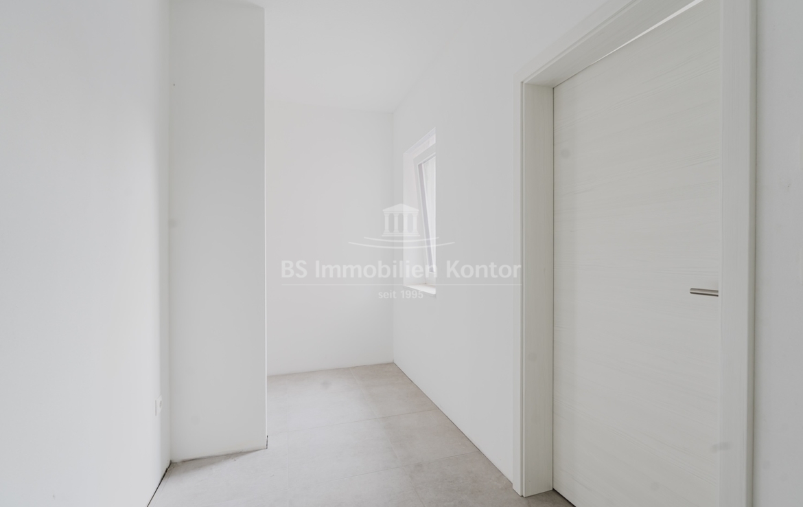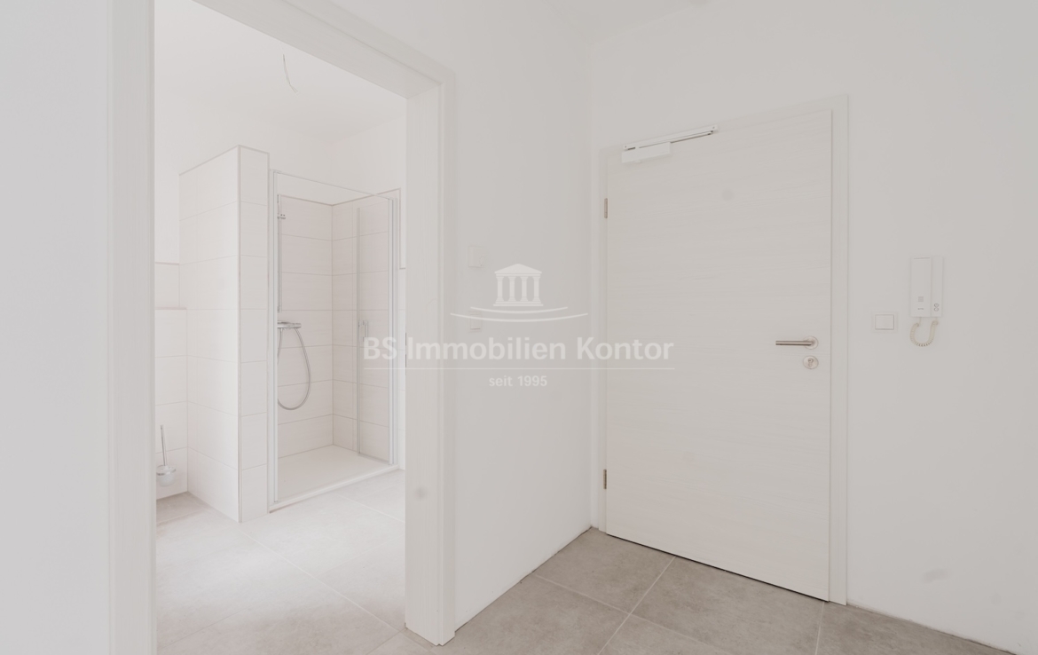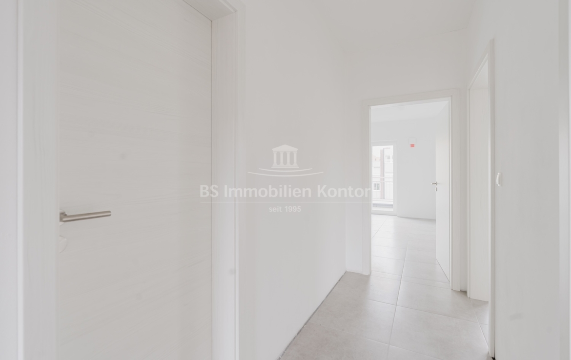 Diese hochwertige Penthouse-Wohnung befindet sich in einem modernen Neubau in zentraler Lage von Papenburg und überzeugt durch ihre gehobene Ausstattung, einen klar strukturierten Grundriss und ein außergewöhnliches Wohnambiente. Auf einer großzügigen Wohnfläche von 91,99 m² erwartet Sie ein offener Wohn-, Ess- und Kochbereich, der durch große Fensterflächen lichtdurchflutet ist und direkten Zugang zu einem sonnigen Balkon bietet – ideal für entspannte Stunden im Freien mit Ausblick über die Stadt. Zwei gut geschnittene Schlafzimmer bieten ausreichend Platz für erholsamen Schlaf und individuelle Gestaltungsmöglichkeiten. Eines der Schlafzimmer verfügt über einen eigenen Balkon – ein besonderes Highlight, das zu entspannten Morgenmomenten einlädt. Das stilvolle Badezimmer ist mit einer bodengleichen Dusche, einem modernen Waschtisch und WC ausgestattet. Ergänzt wird das Raumangebot durch einen praktischen Hauswirtschaftsraum mit Anschlüssen für Waschmaschine und Trockner sowie einen zentral gelegenen Flur, der alle Räume optimal verbindet. Die Beheizung erfolgt über eine effiziente Luft-Wärmepumpe, was nicht nur umweltfreundlich, sondern auch kostensparend ist. Zur Wohnung gehört außerdem ein eigener PKW-Stellplatz direkt am Haus. Die Wohnung befindet sich im Dachgeschoss (Penthouse-Etage) eines Neubaus und ist bezugsbereit. Sie eignet sich ideal für anspruchsvolle Paare, Einzelpersonen oder Kapitalanleger, die Wert auf modernes Wohnen mit besonderem Flair legen.