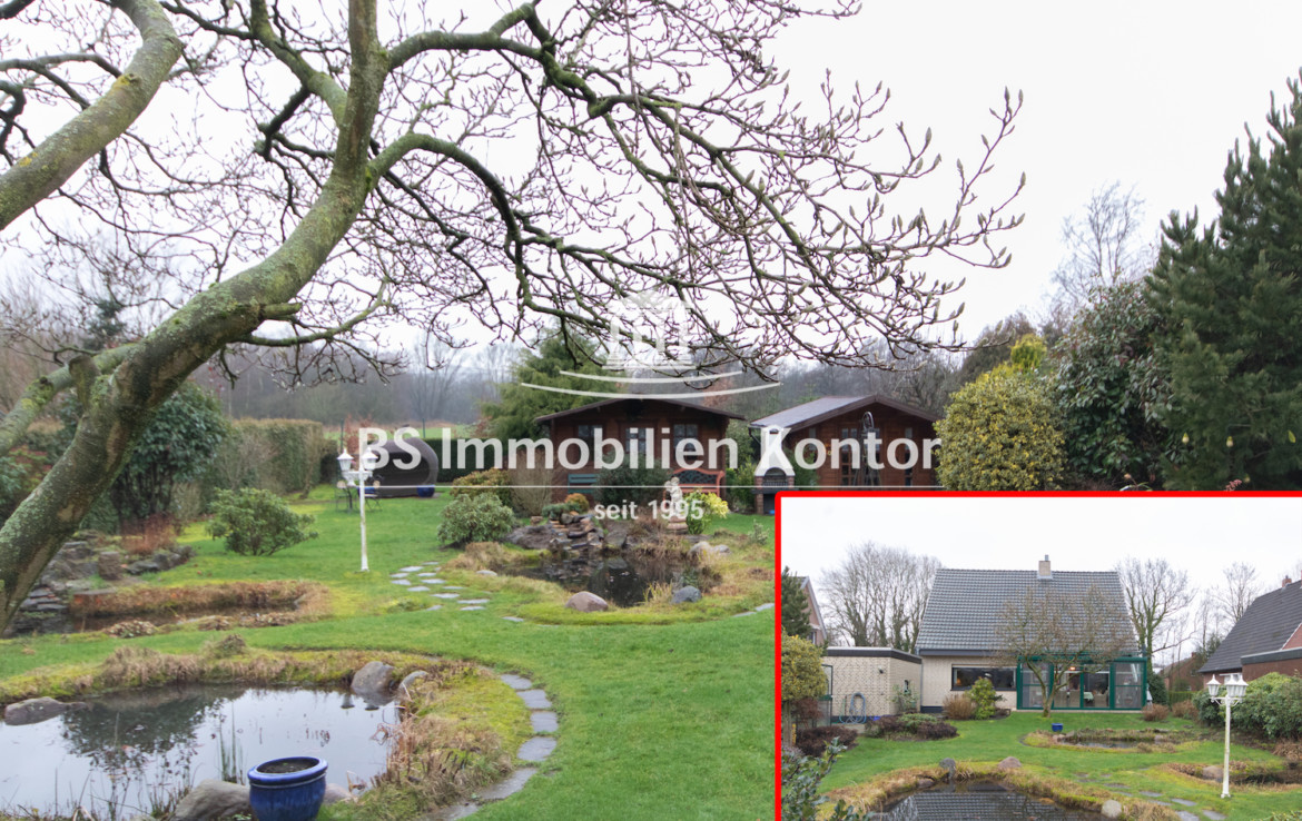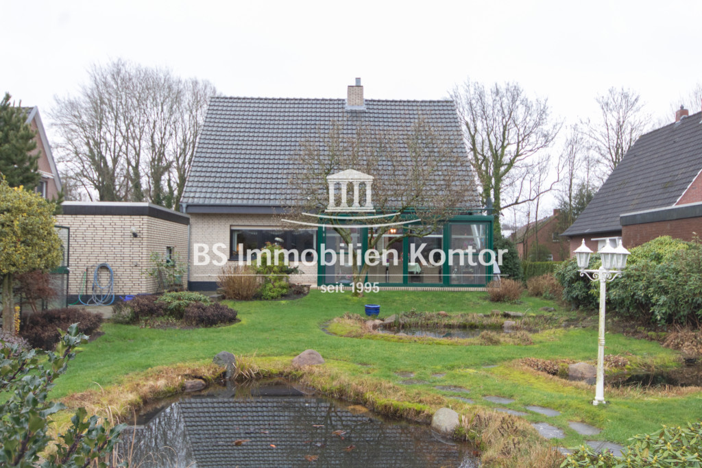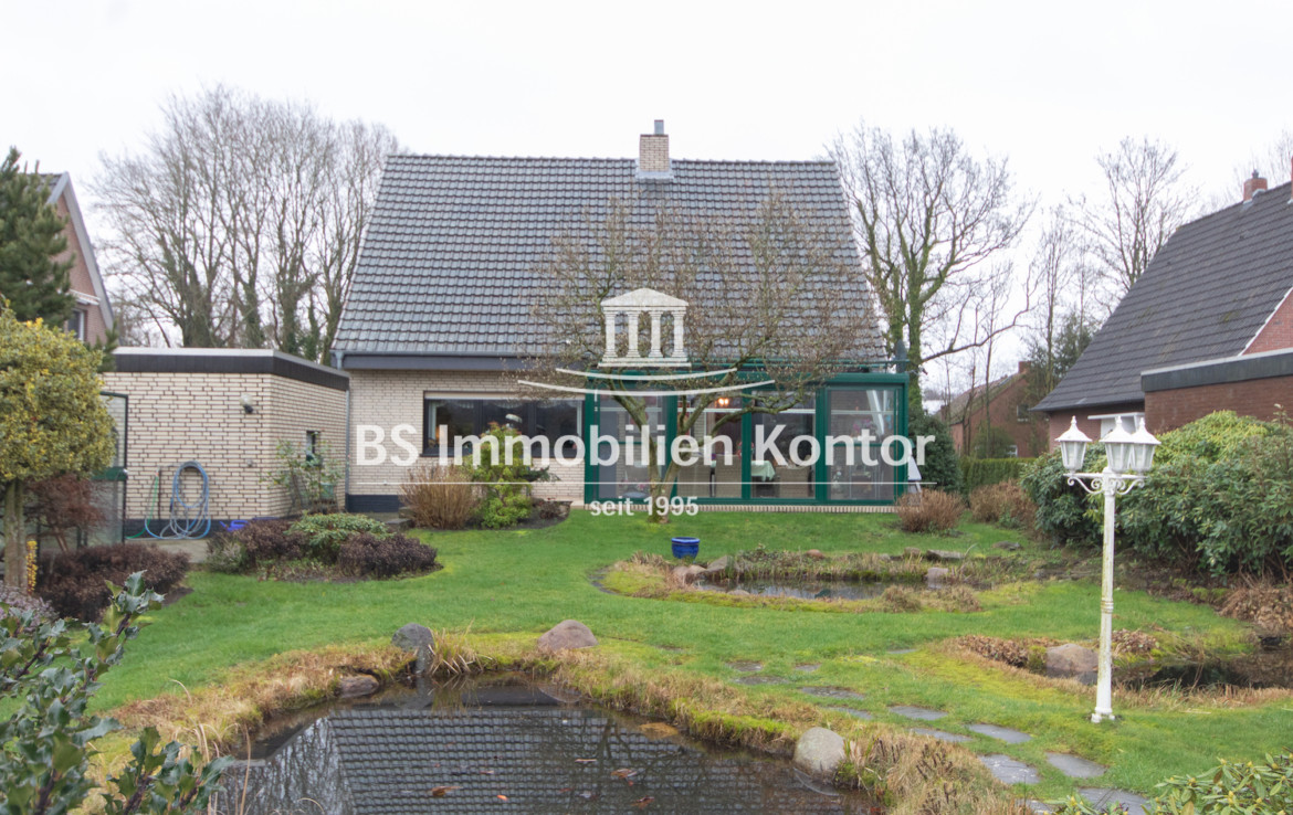 In einer zentralen Lage von Westoverledingen OT. Völlen und nur ca. 5 PKW Minuten von Papenburg entfernt befindet sich dieses top gepflegte Einfamilienhaus. Das Grundstück bemisst ca. 1149qm und verfügt über eine wundervoll angelegte Gartenanlage mit freiem Blick, 2x Gartenhäusern und einen Teich. Das Erdgeschoss erstreckt sich aus dem Flur/Diele, großes Wohn-/Esszimmer, Küche, Büro und dem Gäste-Bad. Im Obergeschoss befindet sich der Flur, 3x Schlafzimmer und das Bad. Der Keller bietet durch die drei zusätzlichen Räume und einem Heizungsraum weitere Abstellmöglichkeiten. Beheizt wird dieses Objekt durch eine Gas-Z.-Heizung, Kachelofen und Kamin im Wohn-/Essbereich. Die brauen Kunststofffenster (Bj. 2012) sind überwiegend mit dreifach-Verglast. Der Wintergarten (doppel-Vergl. Scheiben, ca. 2010 erneuert) und die Terrasse laden an Sommer-/ sowie Wintertagen zum Relaxen und Entspannen ein. Für die Unterbringung Ihres PKWs steht Ihnen eine Garage mit elektrisch bedienbarem Garagentor zur Verfügung. Eine Immobilie für Menschen, die sich Ihren Traum vom Eigenheim in direkter Nähe zu Papenburg und Ems verwirklichen wollen.