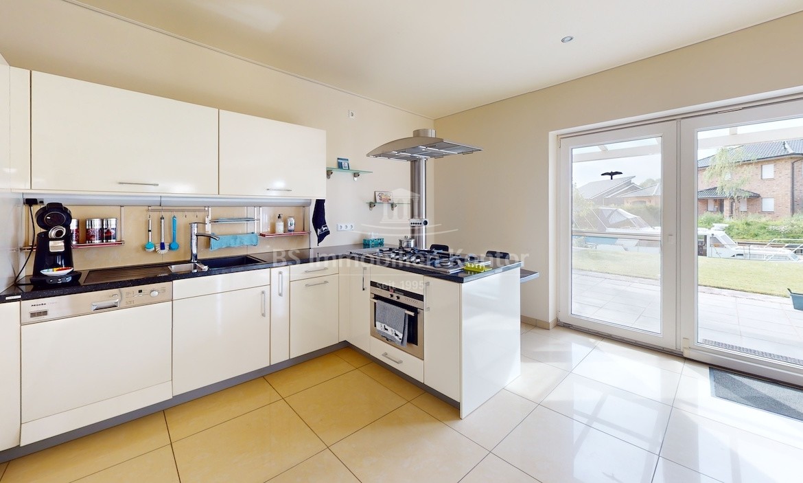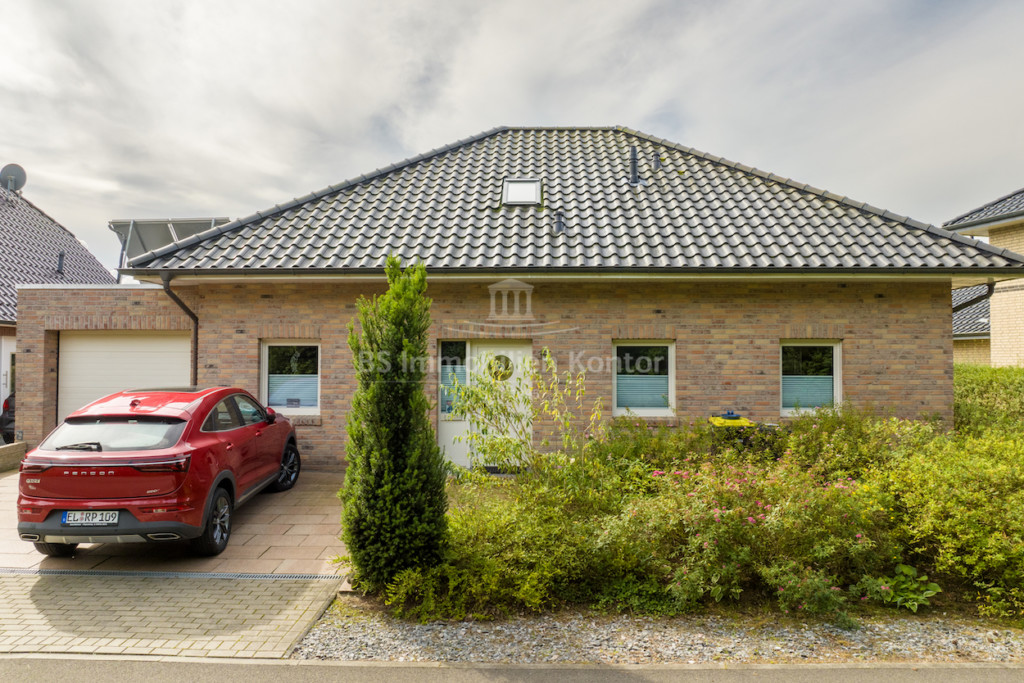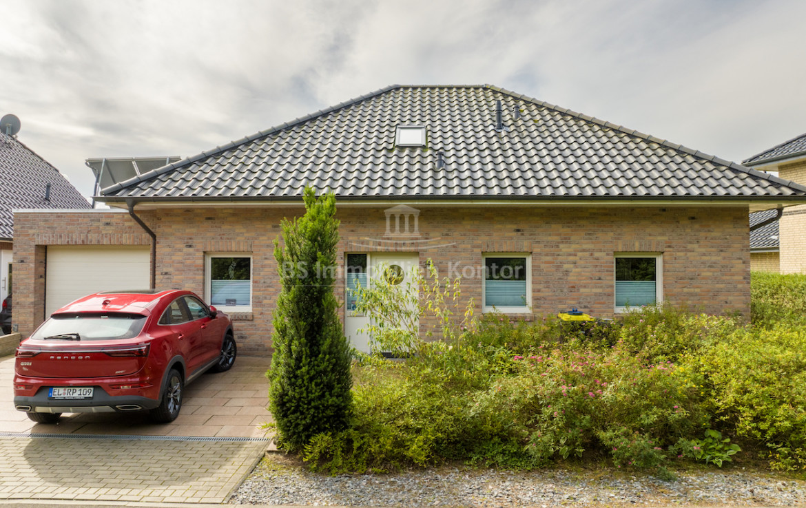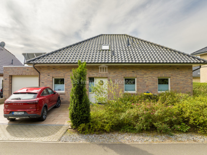 In einer bevorzugten, ruhigen Wohnlage und am Wasser gelegen, befindet sich dieser Bungalow der die perfekte Mischung aus Wohnkomfort und Freizeitmöglichkeiten bietet. Das Grundstück bemisst eine Fläche von ca. 552qm und ist pflegeleicht angelegt. Der im Jahre 2008 erstellte Bungalow, dessen ebenerdige Zugänglichkeit für Wohnkomfort sorgt, eröffnet auch im Obergeschoss überraschend viel Raum für kreative Entfaltung. Beheizt wird die Immobilie durch eine neuwertige Gas-Z.-Heizung. Diese stammt aus dem Baujahr 2023 und bietet dank der Solarunterstützung für die Warmwasseraufbereitung (ca. 500l Speicher) und Heizkraft eine zusätzliche Entlastung der Heizkosten. Die Fußbodenheizung im Erdgeschoss sorgt für eine angenehme Raum- und Bodentemperatur. Dank der vielfach installierten Fensterelemente im offenen Wohn-/Ess-/Kochbereich, sowie dem angegliederten Wintergarten strahlen die Räumlichkeiten eine helle und freundliche Wohlfühlatmosphäre aus. Die weißen Kunststofffenster sind 2-fach-isolierverglast. Für die Unterstellung Ihres PKW´s steht Ihnen eine Garage zur Verfügung (vom Hauswirtschaftsraum aus begehbar). Insgesamt vereint dieser Bungalow am Wasser das Beste aus beiden Welten: Die Ruhe und Gelassenheit des Wassers, sowie den Komfort eines gut durchdachten Wohnraums. Ein Ort, an dem Erholung und Abenteuer Hand in Hand einhergehen und der die Möglichkeit bietet, das Privileg das Wasser direkt vor der eigenen Haustür zu genießen und einen Lebensstil zu pflegen, von dem viele nur träumen können.