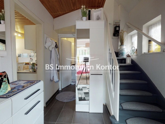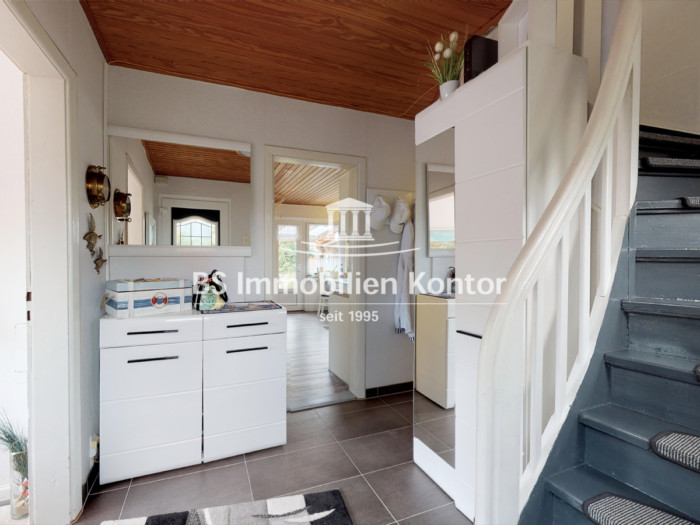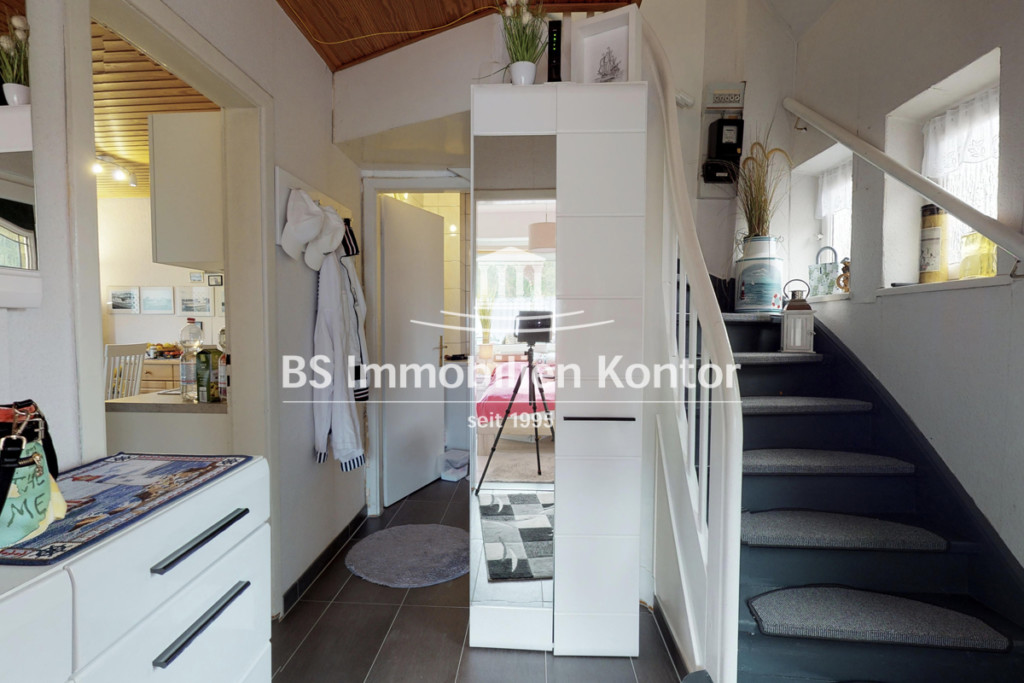In einer ruhigen, bevorzugten Wohnlage von Weener OT. Möhlenwarf befindet sich dieses im Jahr 1959 erstellte Einfamilienhaus (auch ideal als Ferienimmobilie geeignet). Das Grundstück bemisst ca. 480 qm und verfügt über eine Terrasse. Eine Dachsanierung mit Isoliermaßnahmen erfolgte 2000. Im ebenerdigen Bereich befinden sich ein Wohnzimmer, Küche, Bad und Hauswirtschaftsraum. Das Obergeschoss verfügt über zwei Schlafzimmer. Der Teilkeller (2 Räume, ca. 13 qm) bietet weitere Abstellmöglichkeiten. Beheizt wird das Objekt durch Gasöfen. Die Kunststofffenster sind im Erd- und Obergeschoss Iso- Vergl. und mit Jalousien ausgestattet. Für die Unterbringung eines PKW`s steht Ihnen eine Garage zur Verfügung. Weitere Unterstellmöglichkeiten für z. Bsp. Gartengeräte, Fahrräder etc. bietet der Geräteraum (ca. 8qm). Hervorzuheben ist die gute Verkehrsanbindung zur A-28 & A-31 sowie die Nähe zu den Städten Leer & Papenburg. Eine Immobilie für Menschen, die eine ruhige Wohnlage bevorzugen und sich den Traum vom Eigenheim im beliebten Rheiderland erfüllen möchten.