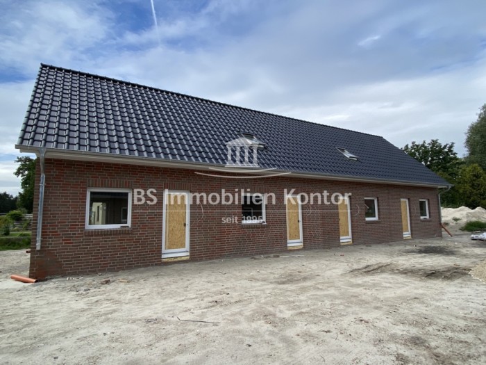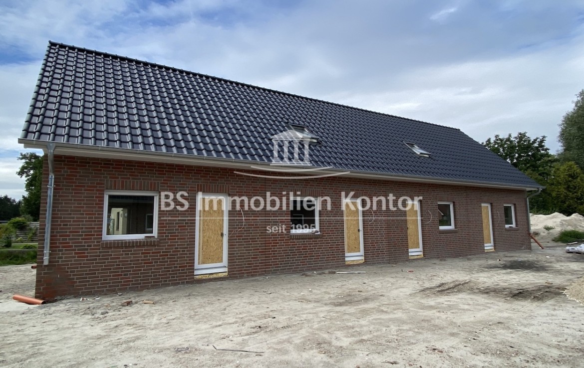 In einer zentralen Wohnlage von Westoverledingen OT Völlenerfehn wird dieses Neubau- Reihenendhaus errichtet. Fördermittel bis zu 18.000€ möglich. Das Erdgeschoss erstreckt sich aus dem Flur/Diele, offener Wohn-/Koch-/Essbereich mit Zugang zur Terrasse sowie dem Bad. Im Obergeschoss der Wohnung befinden sich Flur, 2x Schlafzimmer und ein Abstellraum. Einige Ausstattungsdetails dieses Gebäudes sind unteranderem: 3 Fach-Vergl. Kunststofffenster, glasierte, schwarze Tondachziegel, roter Klinker sowie eine Fußbodenheizung. Beheizt wird das Reihenendhaus durch Erdwärme. Die Fertigstellung ist voraussichtlich im Januar 2021. Eine Immobilie für Menschen, die auf eine neuwertige Immobilie sowie auf die Nähe zu Papenburg nicht verzichten möchten.