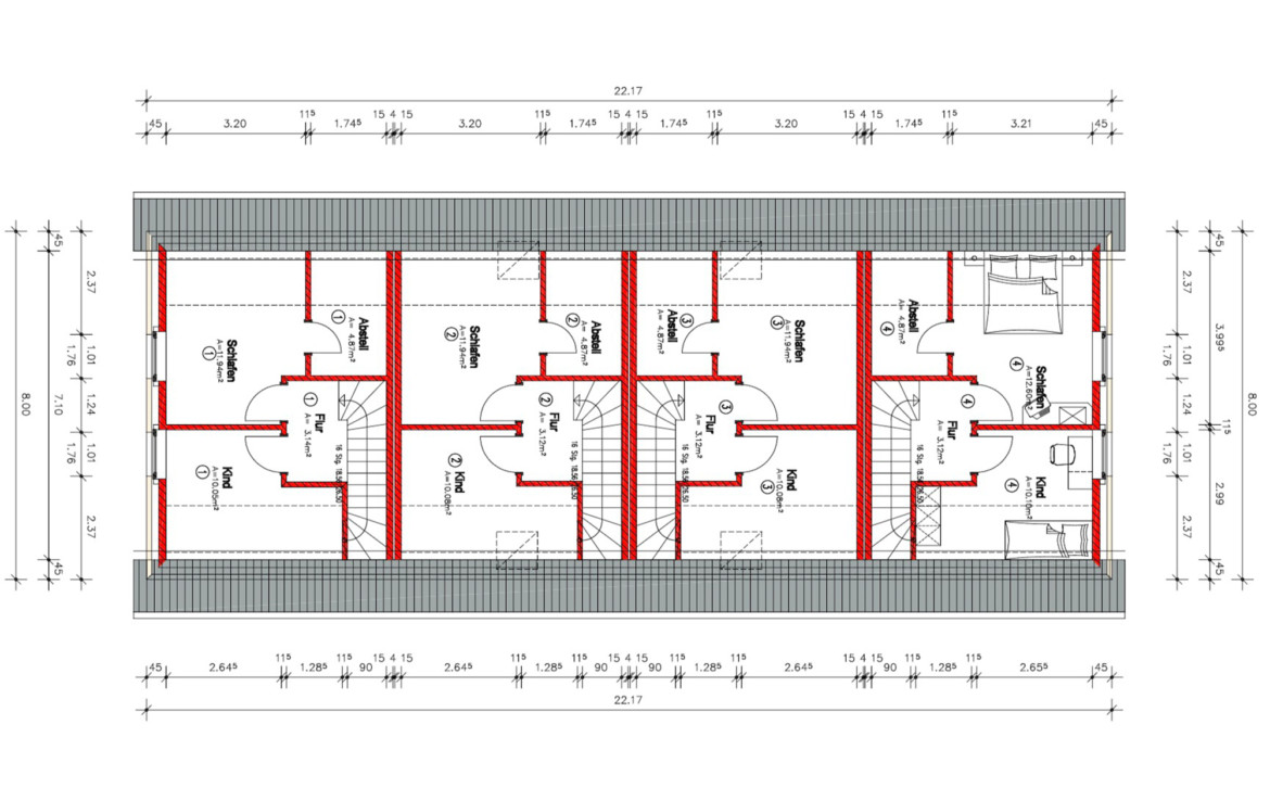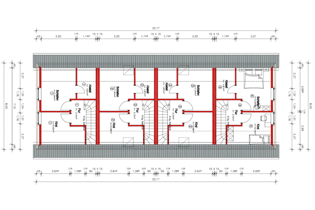 OG: Flur, 2x Schlafzimmer, Abstellraum