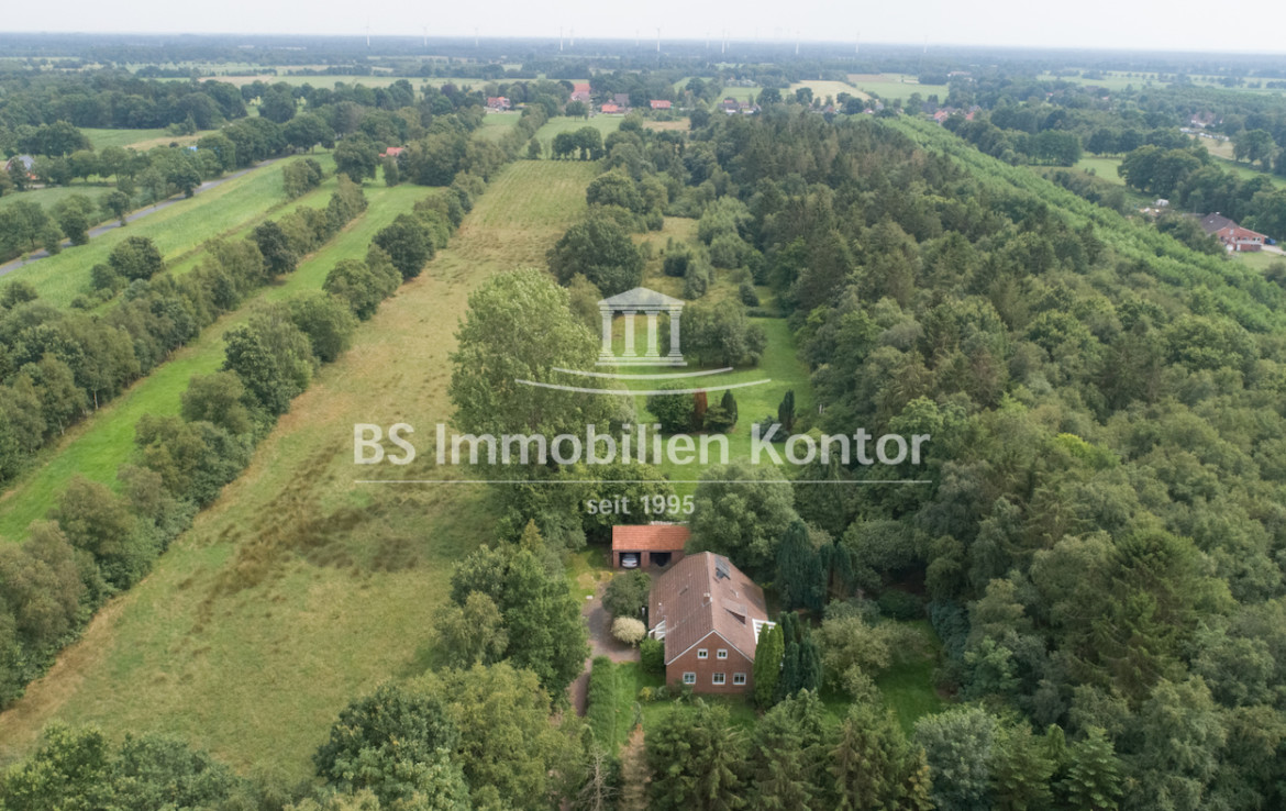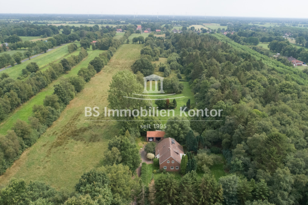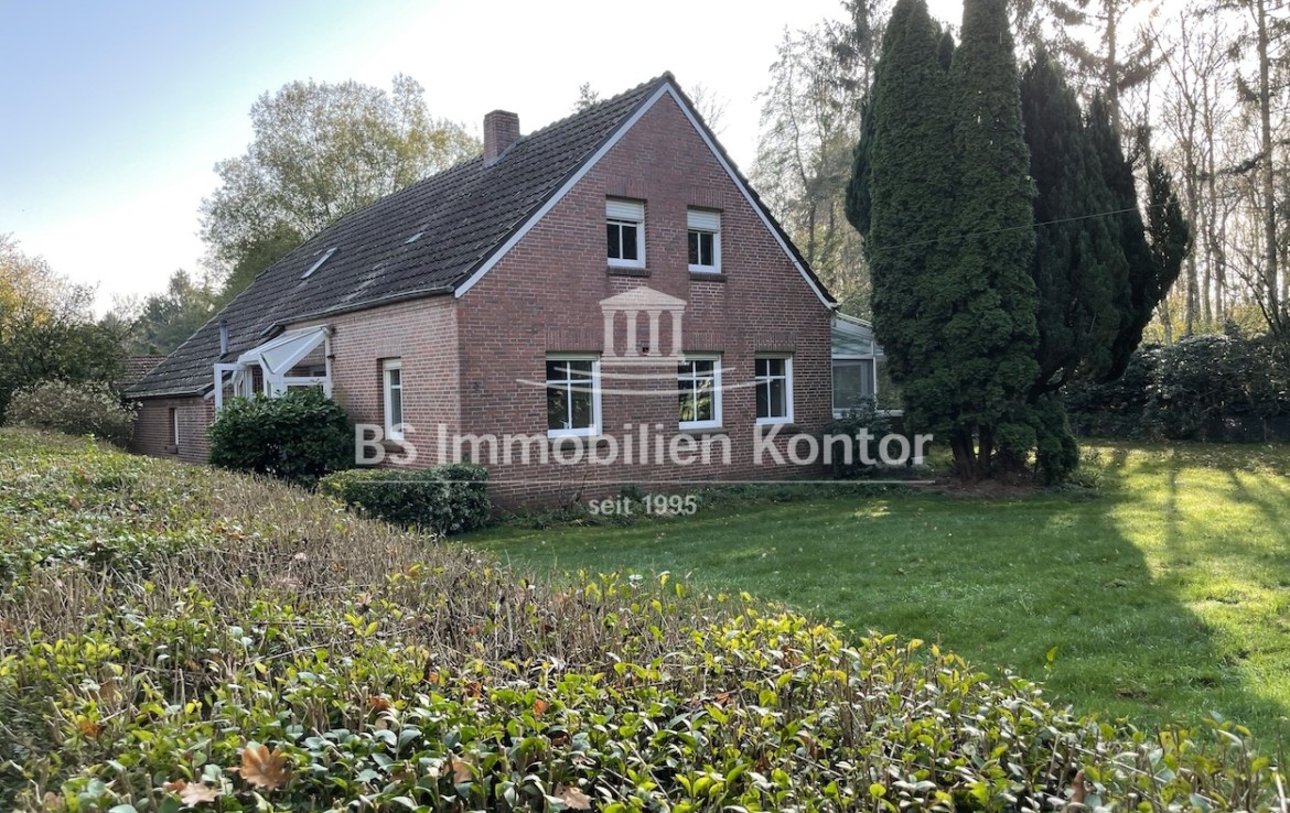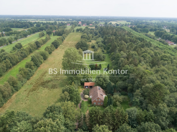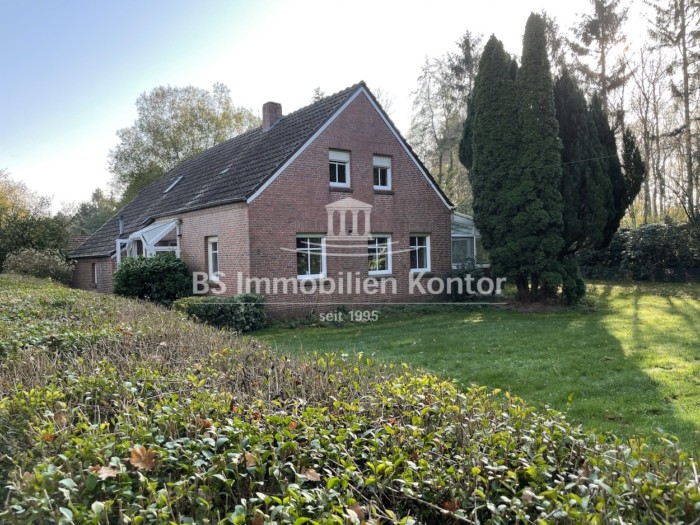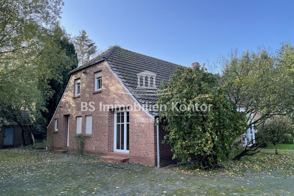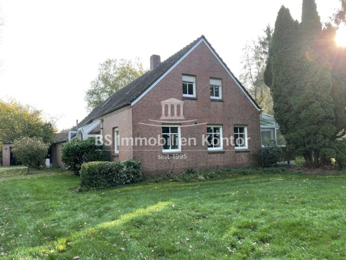 In einer idyllischen, traumhaften Alleinlage umgeben von altem Baumbestand befindet sich dieses im Jahre 1988/89 umfangreich renovierte, ruhig gelegene Fehnhaus. Das Dach wurde mit Ton Dachziegeln neu eingedeckt. Weitere Renovierungsarbeiten wurden im Laufe der Jahre durchgeführt: Gäste-WC, Vollbad, Kleinkläranlage erneuert (2012), ca. 8.000qm Land eingezäunt. Das Erdgeschoss erstreckt sich aus dem Windfang, Flur/Diele, großer Wohnbereich mit Zugang zum Wintergarten, Wohnküche, Schlafzimmer, Gäste-WC, Zimmer, HWR/Abstellraum, Vollbad und dem Heizungsraum. Im Obergeschoss befinden sich Flur, großes Schlafzimmer, Gäste-Zimmer, Duschbad sowie dem Stauraum. Der vom Wohnbereich begehbarer Wintergarten lädt an Sommer-/ sowie Wintertagen zum Relaxen und Entspannen ein. Für die Unterbringung Ihrer PKWs steht Ihnen eine Doppel-Garage zur Verfügung. Beheizt wird das Objekt durch eine Gas-Z.-Heizung, einer Fußbodenerwärmung (Küche, Flur/Diele, Bad EG) und durch einen Specksteinofen (Wohnbereich). Die weißen Kunststofffenster sind mit innenliegenden Sprossen und Jalousien ausgestattet. Eine Immobilie für Naturliebhaber und Individualisten, die diese traumhafte Alleinlage zu schätzen wissen und auf eine Großtierhaltung nicht verzichten möchten.