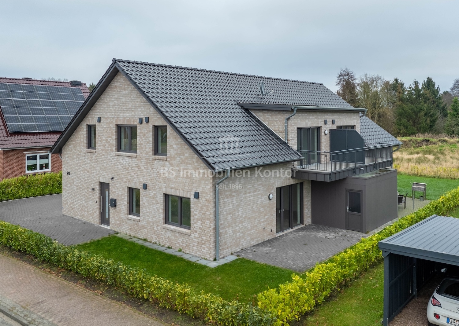 In einer ruhigen, zentralen Lage von Ostrhauderfehn befindet sich diese Neubau-Obergeschosswohnung (Erstbezug) mit Balkon in einem vier Parteienhaus. Alle Infrastrukturellen Einrichtungen sind in 5 PKW-Min. erreichbar. Beheizt wird die Einheit durch eine Luft-/Wärmepumpe (Fußbodenheizung). Dank des hohen Energiestandards A+ sind geringe Nebenkosten gewährleistet. Die Kunststofffenster sind 3-fach Vergl. und mit elektrisch bedienbaren Jalousien ausgestattet. Zusätzliche Unterstellmöglichkeiten bietet ein kleiner außenliegender Abstellraum. Eine Immobilie für Menschen, die sich Ihren Traum vom Wohnen verwirklichen möchten und dabei auf die Nähe zu infrastrukturellen Einrichtungen sowie auf einen hohen Energiestandard nicht verzichten möchten.