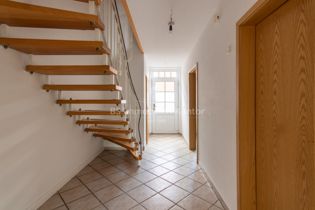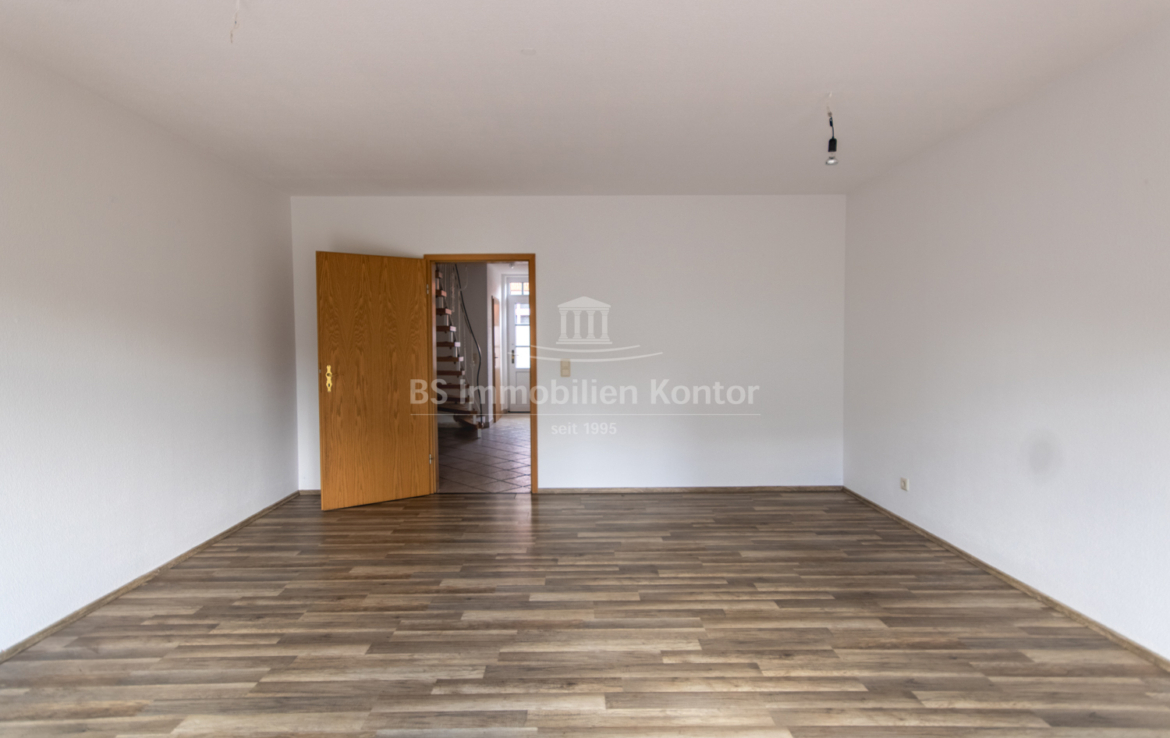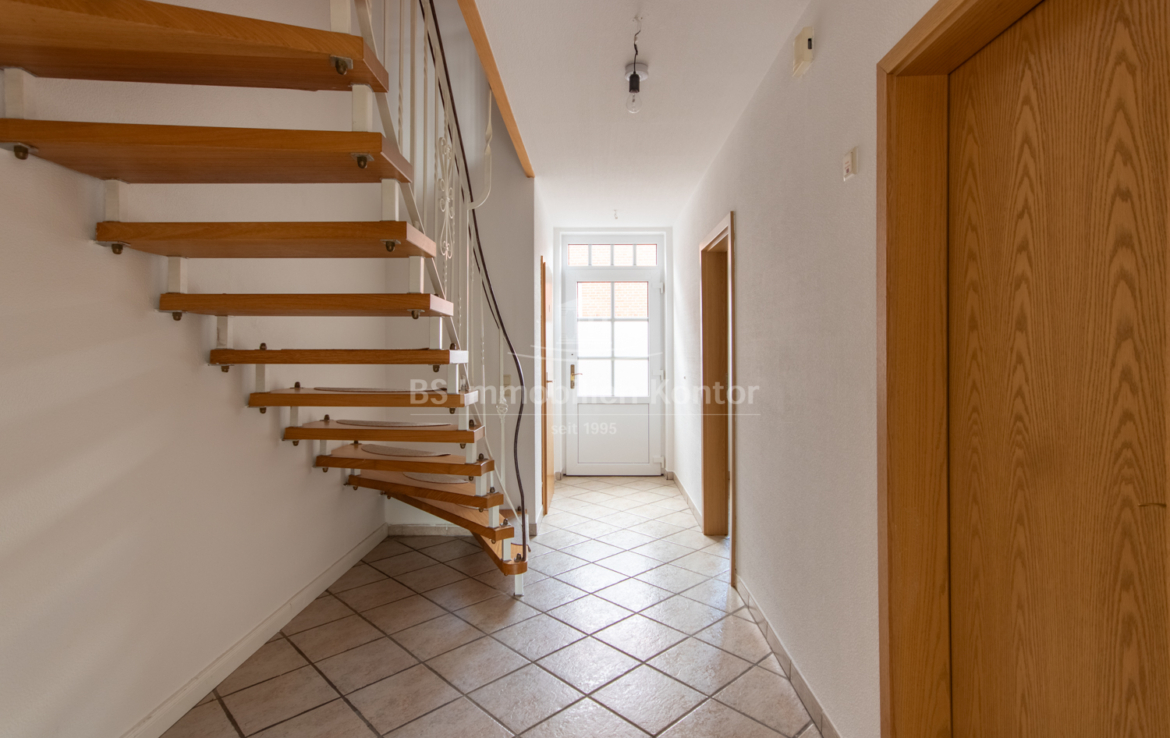 Erdgeschoss: Flur, Küche, Wohnzimmer, Abstellraum, Gäste-WC und Heizungsraum