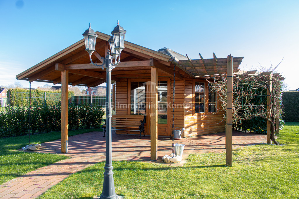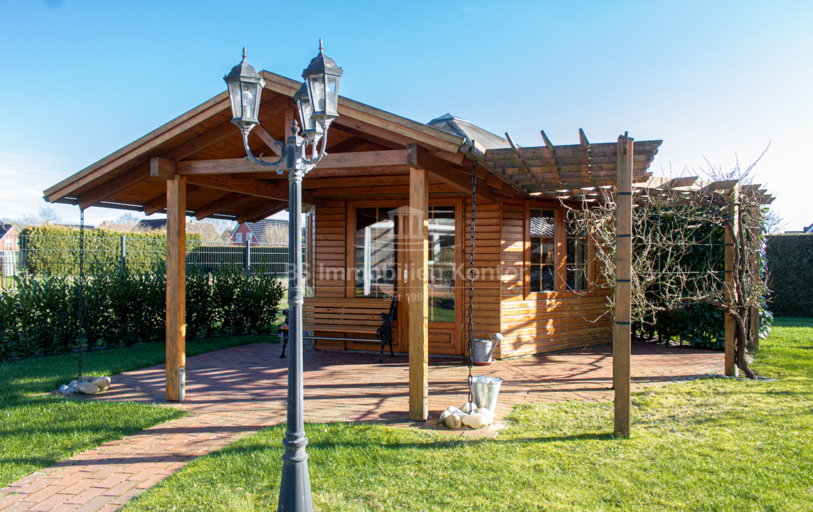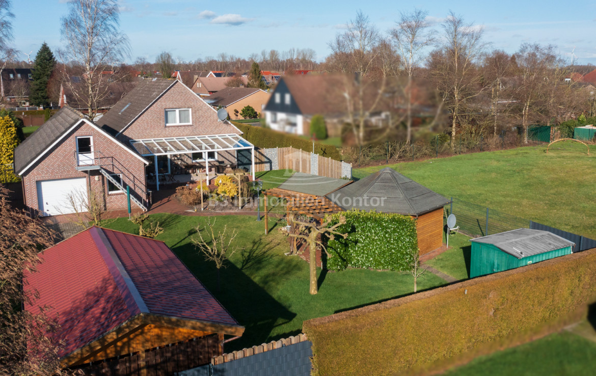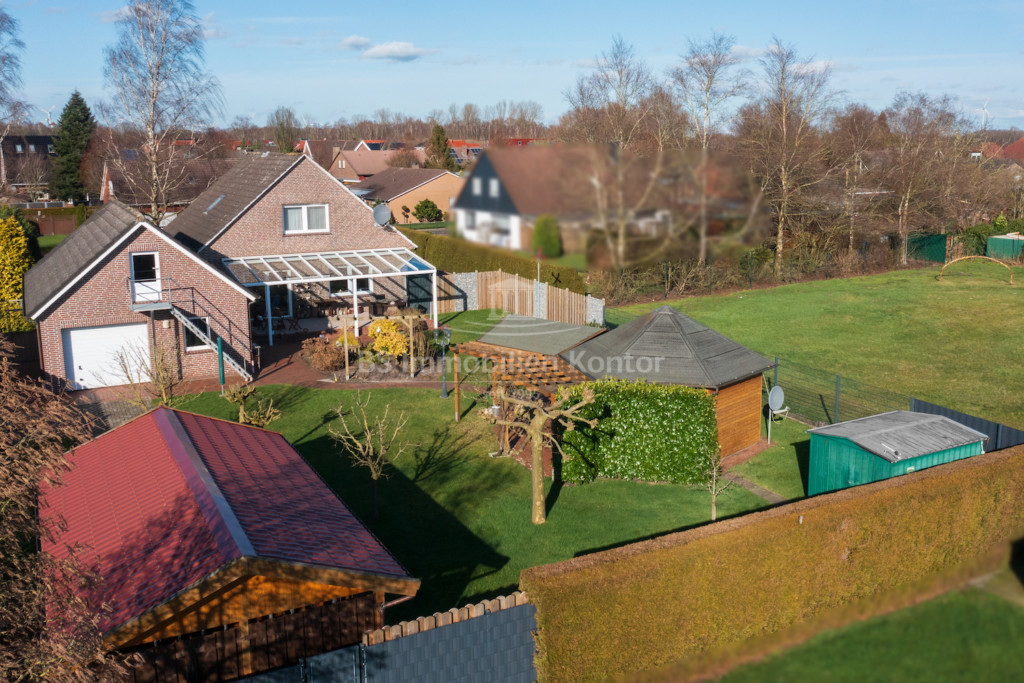 In einer ruhigen Wohnlage von Weener OT. Holthusen befindet sich dieses familienfreundliche Einfamilienhaus in einem top gepflegten Allgemeinzustand. Das Grundstück bemisst ca. 986qm und ist mit zwei Gartenhäusern sowie einer Garage inkl. Durchfahrmöglichkeit zum rückwärtigen Bereich versehen. Die Immobilie wurde im Jahre 1977/78 erbaut und wird dank umfassender Renovierungsarbeiten auch modernen Ansprüchen gerecht. Folgende Arbeiten wurden beispielsweise durchgeführt: Erneuerung der Bodenbeläge, Türen, überwiegend Fenster, Duschbad. Eine Erweiterung um eine Garage (inkl. Lagermöglichkeit im Dachgeschoss) erfolgte 1999. Im Erdgeschoss befinden sich Flur, Wohnküche, Wohnzimmer, Schlafzimmer, Duschbad, Gäste-WC, Abstellraum und Hauswirtschaftsraum. Das Obergeschoss erstreckt sich aus dem Flur, 3x Schlafzimmer sowie dem Gäste-WC. Im Inneren der Immobilie herrscht eine helle und freundliche Wohlfühlatmosphäre. An warmen Sommertagen lädt die von der Küche aus begehbare, überdachte Südterrasse (2013 erneuert) mit freiem Blick zum Relaxen und Entspannen ein. Beheizt wird die Immobilie durch eine Gas-Z.-Heizung. Die weißen Kunststofffenster sind Iso-Vergl. und überwiegend mit elektrisch bedienbaren Jalousien ausgestattet. Eine Immobilie für Menschen, die nach einer Top gepflegten Immobilie Ausschau halten.