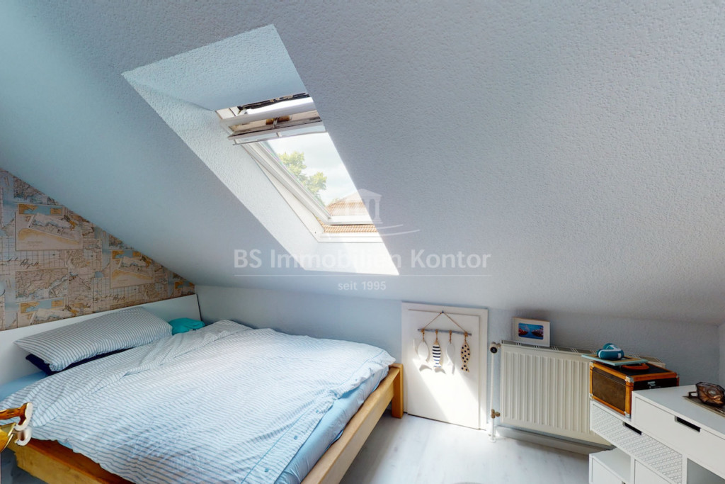 ELW: Flur, Elternschlafzimmer, kl. Kinderzimmer, offener Wohn-/Ess-/Kochbereich, Badezimmer