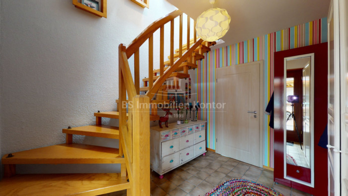 In einer ruhigen, zentralen Lage befindet sich dieses Wohnhaus mit Einliegerwohnung auf einem ca. 875qm großem Grundstück. Das Erdgeschoss des Wohnhauses erstreckt sich aus dem Flur, Wohnzimmer mit Zugang zum Wintergarten, Küche, Schlafzimmer, kl. Kinderzimmer/Büro, Wohnküche, Abstellraum, Bad, Gäste WC. Eine zweite Einheit ist über einen separaten Eingang oder von der Wohneinheit im Erdgeschoss aus begehbar. Hier befinden sich: Flur, Elternschlafzimmer, kl. Kinderzimmer, offener Wohn-/Ess-/Kochbereich sowie ein Badezimmer. Beheizt wird die Immobilie durch eine Gas-Z.-Heizung aus dem Jahre 2007 (Fußbodenerwärmung im EG: Küche, Bad, Wintergarten). Die überdachte Terrasse sowie der Wintergarten in Verbindung mit dem freien Blick laden an schönen Tagen zum Relaxen und Entspannen ein. Für die Unterbringung des PKWs steht Ihnen eine Garage zur Verfügung. Weitere Abstell-/ und Nutzflächen bieten die zwei Nebengebäude im rückwärtigen Bereich. Eine Immobilie für Menschen die auf eine vielseitige Verwendbarkeit nicht verzichten möchten und die Nähe zum Zentrum zu schätzen wissen.