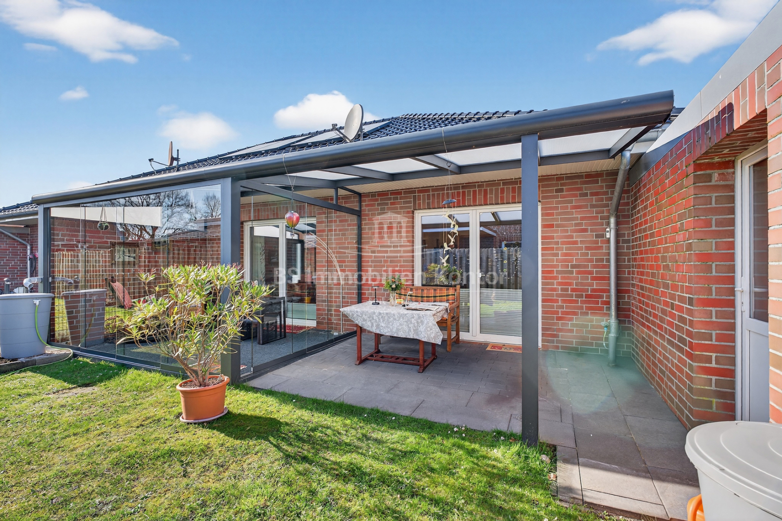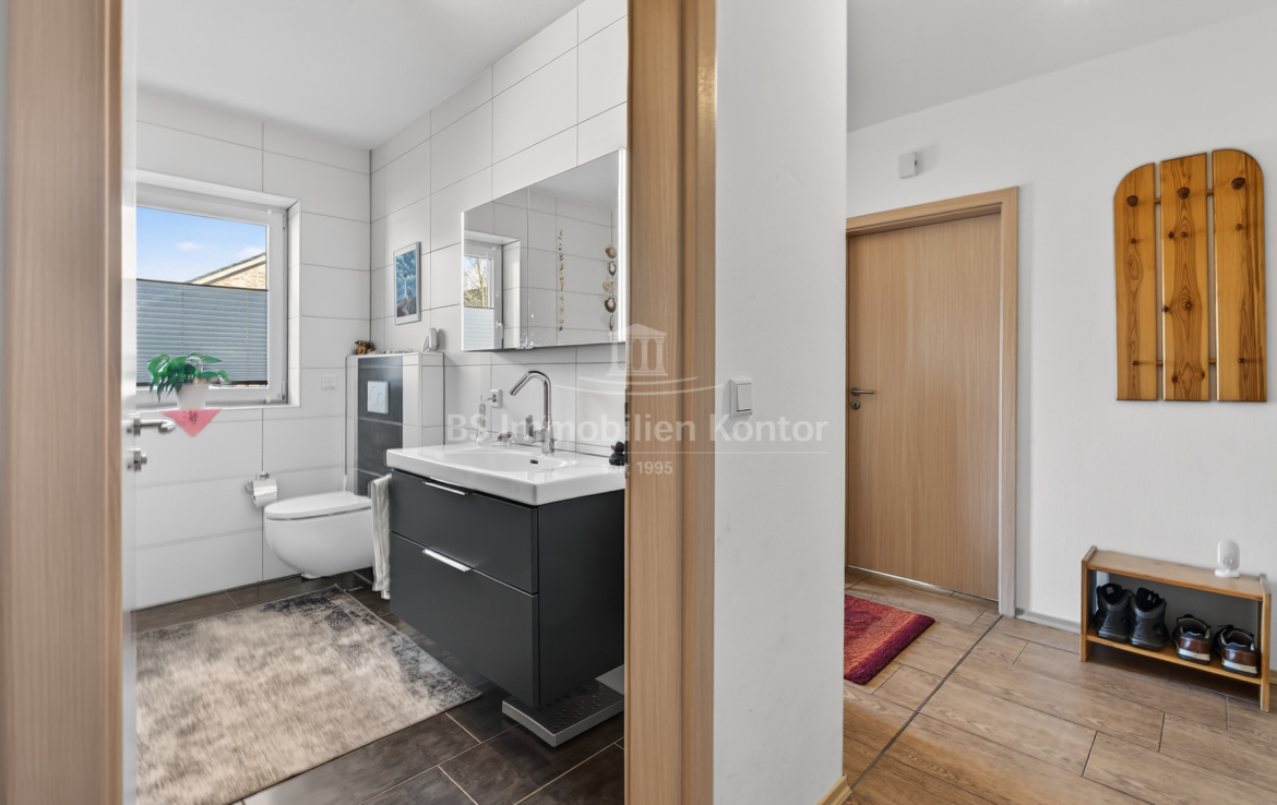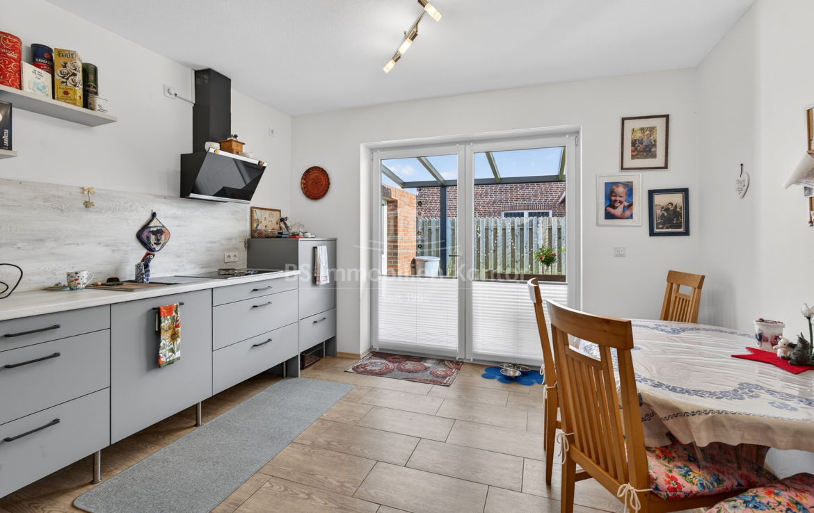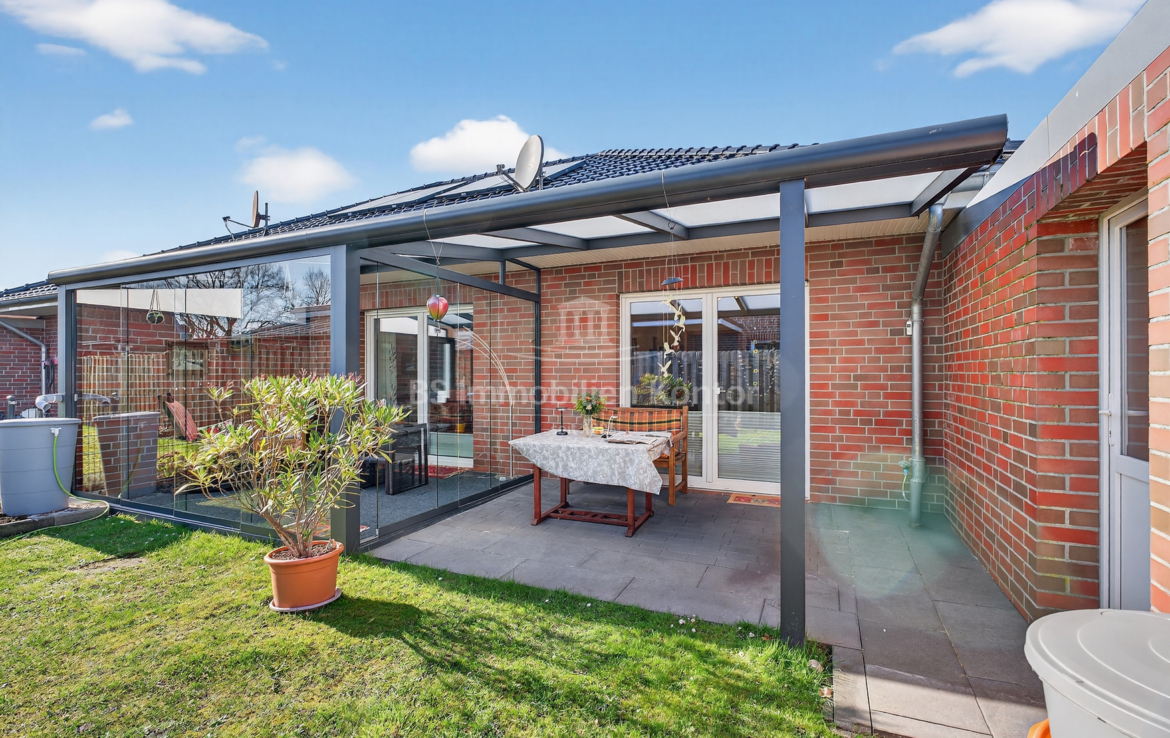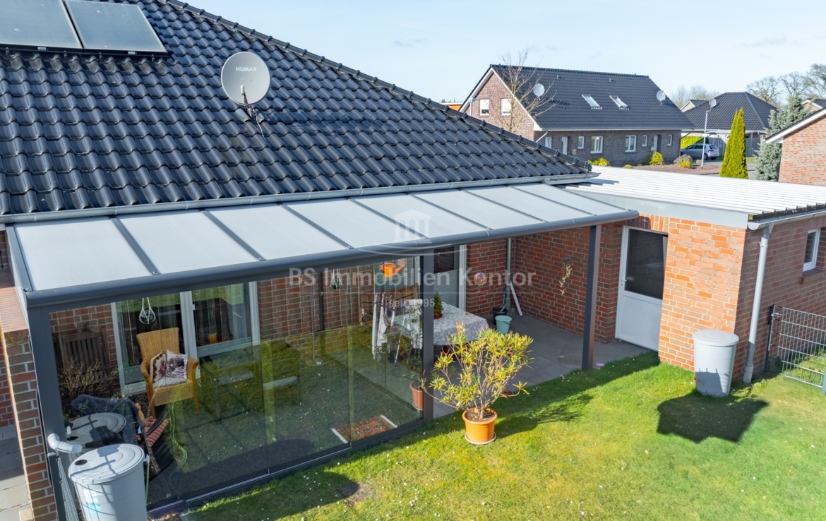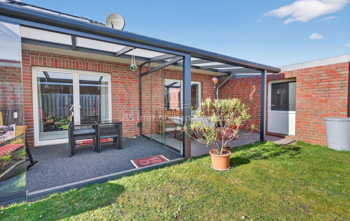 In einer ruhigen und bevorzugten Wohnlage von Westoverledingen OT Flachsmeer befindet sich diese Bungalow Doppelhaushälfte in einem top gepflegtem Allgemeinzustand. Die Immobilie wurde im Jahre 2013 auf einem ca. 305qm großem Grundstück errichtet. Das Erdgeschoss erstreckt sich aus Flur/Diele, Wohnküche, Wohnzimmer, Schlafzimmer, Gästezimmer und ein Duschbad mit WC. Für weitere Unterstellmöglichkeiten steht Ihnen einer Garage (ca. 34,44qm) zur Verfügung. Die überdachte Terrasse lädt an Sommertagen zum Relaxen und Entspannen ein. Beheizt wird das Objekt durch eine Gas-Z.-Heizung. Eine Fußbodenheizung sorgt im Wohnzimmer, im Flur, im Badezimmer sowie in der Küche für angenehme Wärme. In den Schlafräumen wurden Heizkörper montiert. Die weißen Kunststofffenster sind 3-fach-Vergl. und mit elektrischen bedienbaren Jalousien ausgestattet. Eine auf dem Dach montierte Thermiesolaranlage sorgt für effiziente Warmwasseraufbereitung.