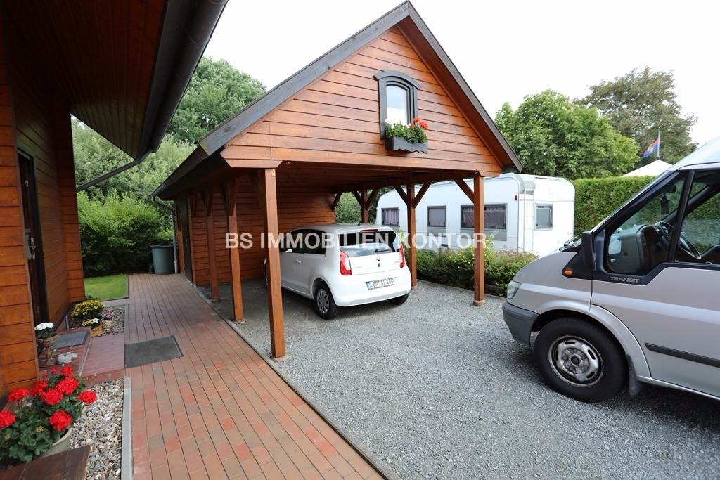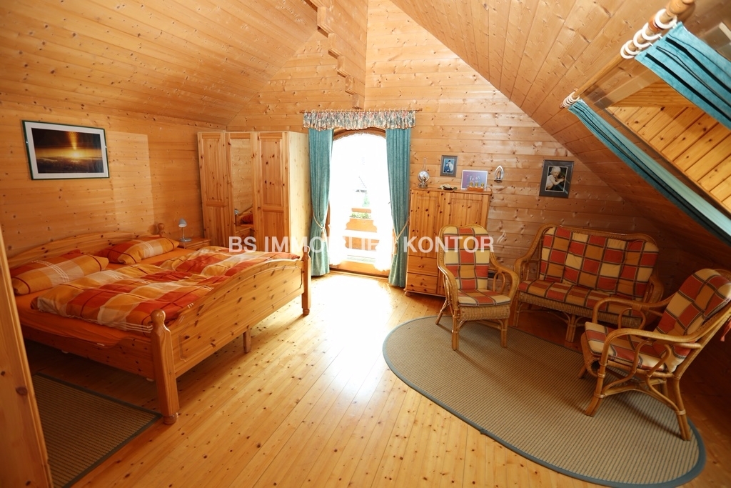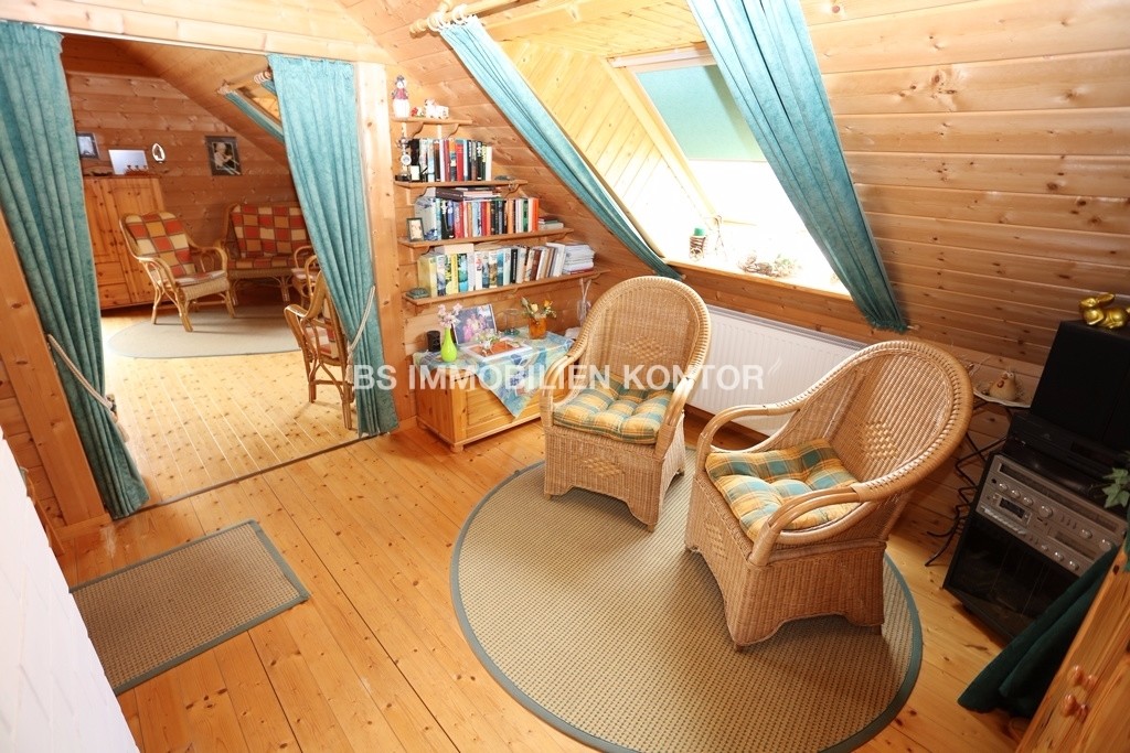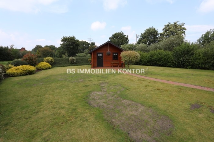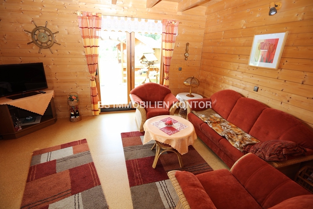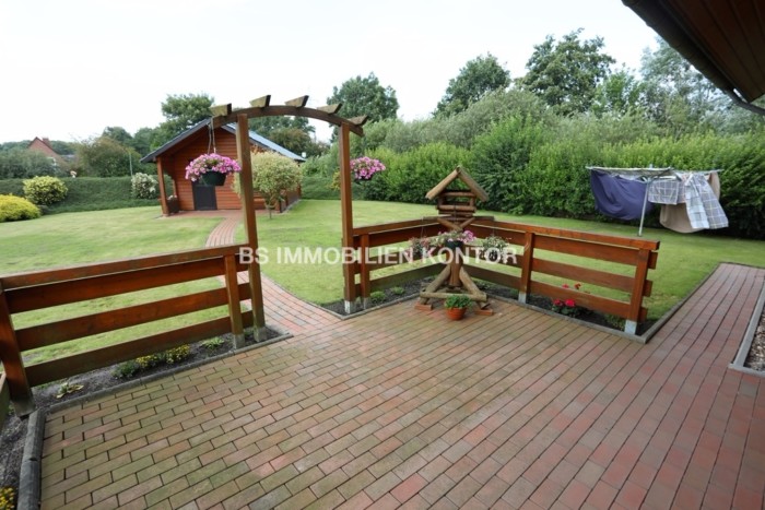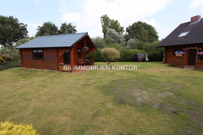 Grundstück: ca. 900 qm (Gartenanlage, Terrasse, Blockhaus)