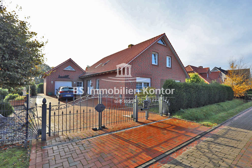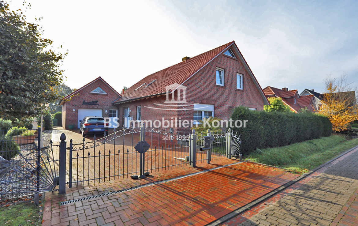 Dieses Immobilienangebot präsentiert sich in einer ruhigen, zentralen Wohnlage von Großheide und ist kurzfristig bezugsfrei. Das gepflegte Einfamilienhaus wurde 2001in konventioneller Massivbauweise mit einem Satteldach erstellt. Die großzügige Hofauffahrt ist mit einem elektrischen Tor ausgestattet. Vom einladenden Eingangsbereich eröffnet sich Ihnen der lichtdurchflutete Wohn- und Essbereich. Der direkt angegliederte Wintergarten begeistert mit einem freien Blick in die Gartenanlage. Mit einer Wohnfläche von über 175qm bietet Ihnen diese Immobilie ausreichend Platz und Entfaltungsmöglichkeiten für die ganze Familie. Zwei der insgesamt drei Schlafzimmer im Obergeschoss sind derzeit mit einer Küchenzeile ausgestattet. Das komplett ausgebaute Nebengebäude bietet Ihnen Platz für einen PKW und weitere Abstellfläche. Das pflegeleichte Eigentumsgrundstück bemisst ca. 1.093qm und ist komplett durch eine Hecke eingefriedet. Die weißen Kunststofffenster sind Isolierverglast und mit Jalousien ausgestattet. Beheizt wird die Immobilie mit einer neuwertigen Gas-Z.-Heizung (BJ: 2023).