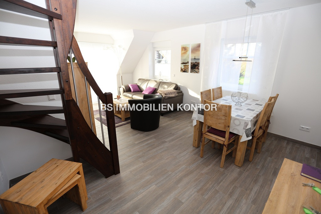 Diese neuwertige Obergeschosswohnung wurde 2015/16 in einer zentralen, ruhigen Wohnlage von Greetsiel-Nähe Zwillingsmühlen erstellt. Das Mehrfamilienhaus besteht insgesamt aus 4 hochwertigen Wohnungen und wurde seinerzeit durch eine renommierte, ortsansässige Firma errichtet. Die gehobene Ausstattung der Obergeschosswohnung erstreckt sich über: Kunststofffenster mit 3-fach Verglasung, Außenjalousien mit Elektroantrieb, Fußbodenheizung in allen Räumen, hochwertige weiße Innentüren, gute Sanitärausstattung, hochwertige Treppengeländer aus Edelstahl im Treppenhaus etc.. Jede Wohneinheit verfügt über einen eigenen PKW-Einstellplatz und sep. Versorgungsanschlüssen (Gas, Wasser, Strom ). Die Wohnung wird inkl. abgebildeten