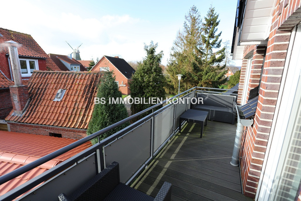 Greetsiel–Zwillingsmühlenblick! Neuwertige OG-Wohnung mit Inventar, Möblierung, gr. Balkon und PKW-Stellplatz in zentraler, ruhiger Lage! - 26736 Krummhörn