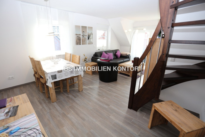 Diese neuwertige Obergeschosswohnung wurde 2015/16 in einer zentralen, ruhigen Wohnlage von Greetsiel-Nähe Zwillingsmühlen erstellt. Das Mehrfamilienhaus besteht insgesamt aus 4 hochwertigen Wohnungen und wurde seinerzeit durch eine renommierte, ortsansässige Firma errichtet. Die gehobene Ausstattung der Obergeschosswohnung erstreckt sich über: Kunststofffenster mit 3-fach Verglasung, Außenjalousien mit Elektroantrieb, Fußbodenheizung in allen Räumen, hochwertige weiße Innentüren, gute Sanitärausstattung, hochwertige Treppengeländer aus Edelstahl im Treppenhaus etc.. Jede Wohneinheit verfügt über einen eigenen PKW-Einstellplatz und sep. Versorgungsanschlüssen (Gas, Wasser, Strom ). Die Wohnung wird inkl. abgebildeten