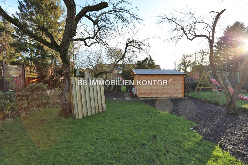 Grundstück: ca. 512 qm (4 Pkw-Stellplätze, Gartenanlage, Baumbestand, Blockhaus, 2x Süd-Terrasse)
