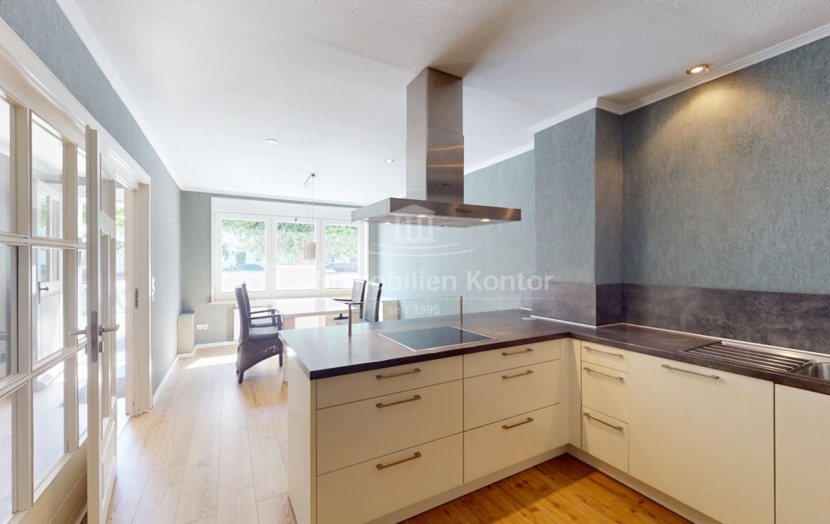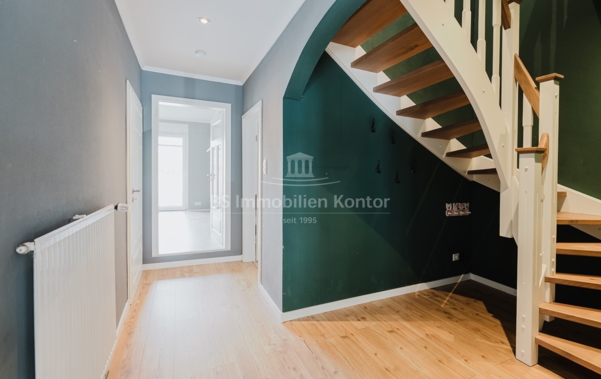 In direkter Lage am malerischen Hafen von Weener erwartet Sie dieses charmante, denkmalgeschützte Einfamilienhaus mit einer Wohnfläche von ca. 180 m². Das um 1900 erbaute Haus steht auf einem ca. 292 m² großen Grundstück und wurde 2018 umfassend renoviert. Im Erdgeschoss empfängt Sie ein zentraler Flur, der alle Räume miteinander verbindet. Die großzügige Küche mit Essbereich lädt zum Kochen und Verweilen ein. Das Wohnzimmer bietet einen separaten, gemütlichen Rückzugsort mit direktem Zugang zur überdachten Terrasse. Ein Schlafzimmer, ein Gäste-WC sowie ein praktischer Abstellraum vervollständigen das Raumangebot auf dieser Ebene. Das Obergeschoss bietet vier weitere Schlafzimmer, ein großes Vollbad sowie einen geräumigen Flur. Damit eignet sich das Haus ideal für Familien mit Platzbedarf oder auch für Menschen, die Wohnen und Arbeiten unter einem Dach vereinen möchten. Ein Teilkeller mit ca. 14 m² Nutzfläche steht zusätzlich zur Verfügung. Der Dachboden ist ausbaufähig. Das Haus wird über eine moderne Gaszentralheizung aus dem Jahr 2018 beheizt, die zudem die Warmwasseraufbereitung übernimmt. Der Außenbereich überzeugt mit einer überdachten Terrasse sowie Garage, die über die rückwärtige Zufahrt bequem erreichbar ist.