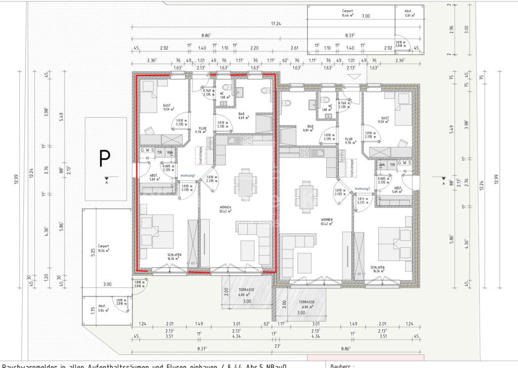 Gebäude: EG: Flur/Diele, Gäste WC, Duschbad mit WC, Gästezimmer, HWR, offener Wohn-/Essbereich mit Küchenanschlüssen und Zugang zur Terrasse, Abstellraum, Schlafzimmer
