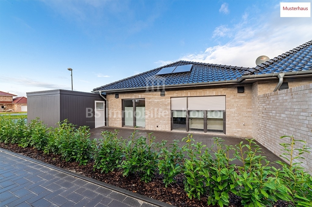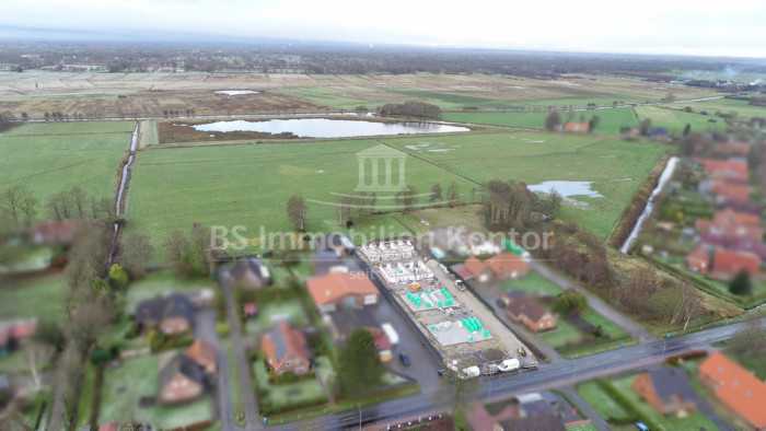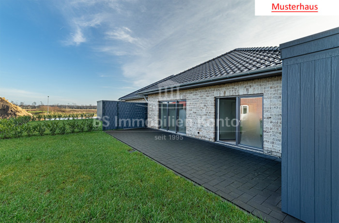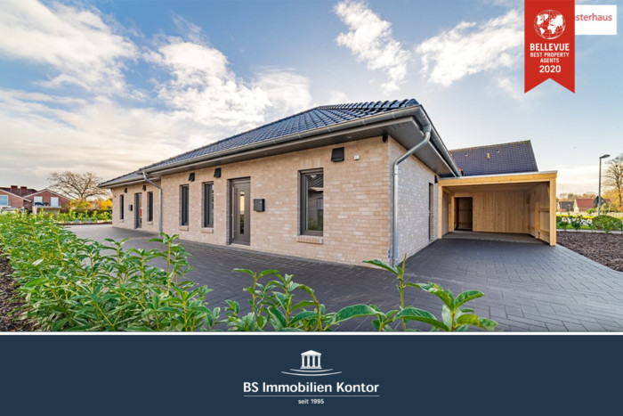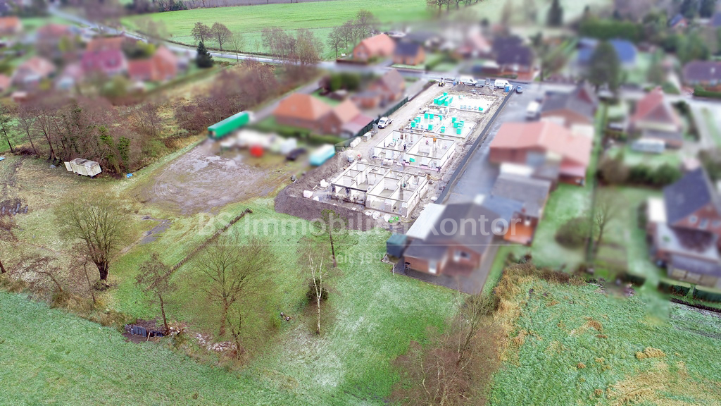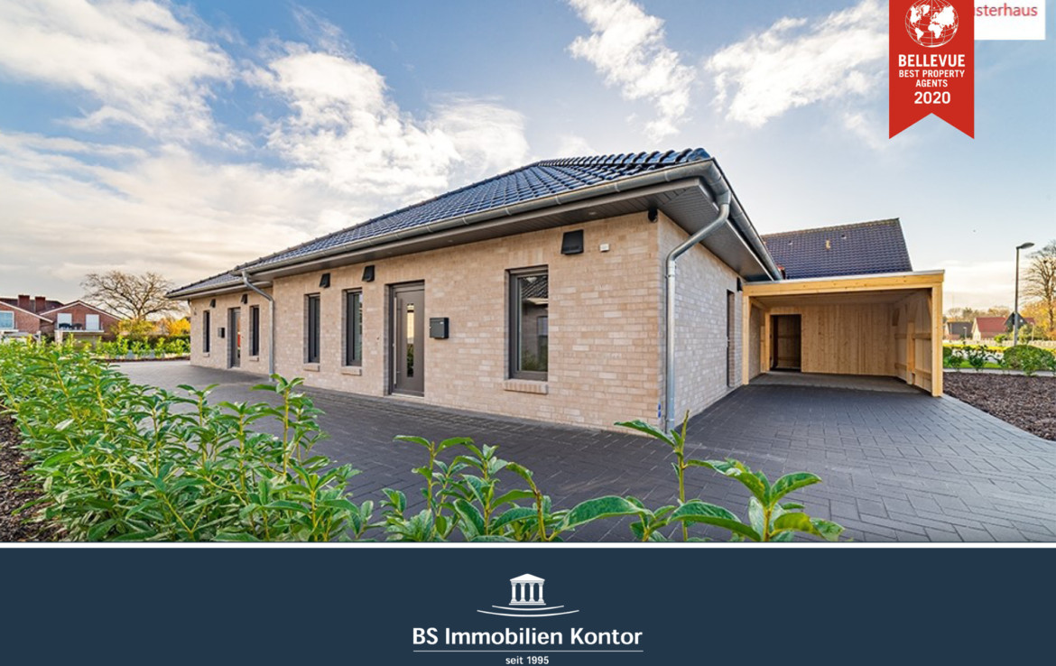 Lassen Sie sich von diesem Wohntraum überzeugen. Diese Neubau Bungalow Nr. 8 wird Ende 2022 von einem renommierten Bauunternehmen aus der Region auf einem großzügig geschnittenen Grundstück in Großefehn schlüsselfertig errichtet. Die äußerst ansprechende Raumaufteilung sowie die bodentiefen Fenster, lassen die ca. 86 qm große Wohnfläche lichtdurchflutet und weitläufig erscheinen. Das pflegeleicht angelegte Grundstück bemisst ca. 300qm. Jede Bungalowhaushälfte verfügt über ein eigenes Carport und eine nach Westen ausgerichtete Terrasse. Die Küche ist als offene Wohnküche geplant und lädt zum gemeinschaftlichen Kochen und Verweilen ein. Der über die Bodentreppe erreichbare Dachboden ist ebenfalls sehr großflächig und bietet Ihnen ausreichend Abstellmöglichkeiten. Die Immobilie wird nach den aktuellen Richtlinien eines KFW-Effizienzhauses55 erstellt. Bis zum 31.01.2022 können Sie sich noch die KfW Förderung sichern (bis 18.000,00 € möglich). Standardmäßig verfügt der Bungalow über folgende Ausstattung: Elektrische Jalousien, Dreifachverglaste Fenster, Fußbodenheizung, Raufaser tapeziert, hochwertige Fliesen etc. Eine ausführliche Baubeschreibung erhalten Sie gerne auf Nachfrage. Sonderwünsche können gern gegen Aufpreis und sofern dies aufgrund des Baufortschrittes noch möglich ist, umgesetzt werden. Aufgrund der barrierefreien Anordnung der Räumlichkeiten eignet sich dieser Bungalow ideal als Altersruhesitz. Beheizt wird das Objekt durch eine Gas-Z.-Heizung inkl. Solarunterstützung. Ein Objekt für Menschen die das „ebenerdige Wohnen“ bevorzugen. Zögern Sie nicht uns zu kontaktieren und vereinbaren Sie gerne einen Besichtigungstermin für das baugleiche Musterhaus.