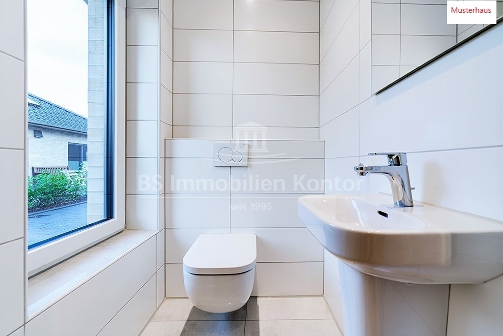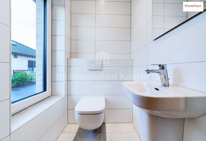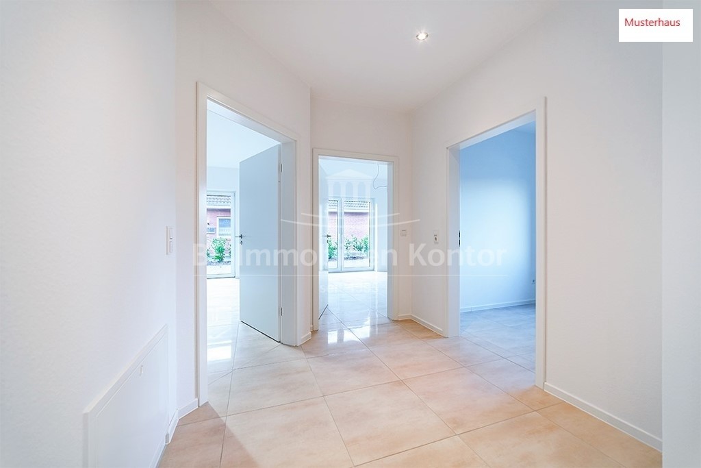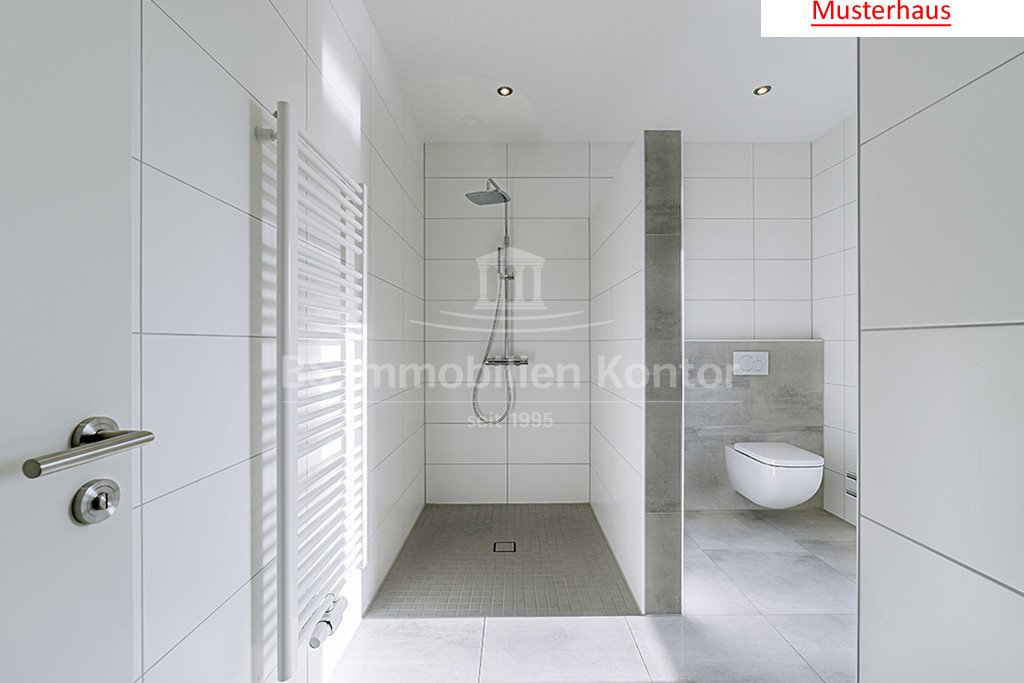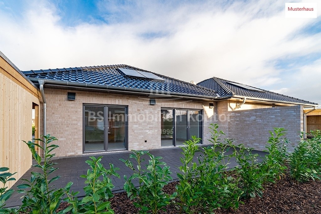 Lassen Sie sich von diesem Wohntraum überzeugen. Diese Neubau Bungalow Nr. 8 wird Ende 2022 von einem renommierten Bauunternehmen aus der Region auf einem großzügig geschnittenen Grundstück in Großefehn schlüsselfertig errichtet. Die äußerst ansprechende Raumaufteilung sowie die bodentiefen Fenster, lassen die ca. 86 qm große Wohnfläche lichtdurchflutet und weitläufig erscheinen. Das pflegeleicht angelegte Grundstück bemisst ca. 300qm. Jede Bungalowhaushälfte verfügt über ein eigenes Carport und eine nach Westen ausgerichtete Terrasse. Die Küche ist als offene Wohnküche geplant und lädt zum gemeinschaftlichen Kochen und Verweilen ein. Der über die Bodentreppe erreichbare Dachboden ist ebenfalls sehr großflächig und bietet Ihnen ausreichend Abstellmöglichkeiten. Die Immobilie wird nach den aktuellen Richtlinien eines KFW-Effizienzhauses55 erstellt. Bis zum 31.01.2022 können Sie sich noch die KfW Förderung sichern (bis 18.000,00 € möglich). Standardmäßig verfügt der Bungalow über folgende Ausstattung: Elektrische Jalousien, Dreifachverglaste Fenster, Fußbodenheizung, Raufaser tapeziert, hochwertige Fliesen etc. Eine ausführliche Baubeschreibung erhalten Sie gerne auf Nachfrage. Sonderwünsche können gern gegen Aufpreis und sofern dies aufgrund des Baufortschrittes noch möglich ist, umgesetzt werden. Aufgrund der barrierefreien Anordnung der Räumlichkeiten eignet sich dieser Bungalow ideal als Altersruhesitz. Beheizt wird das Objekt durch eine Gas-Z.-Heizung inkl. Solarunterstützung. Ein Objekt für Menschen die das „ebenerdige Wohnen“ bevorzugen. Zögern Sie nicht uns zu kontaktieren und vereinbaren Sie gerne einen Besichtigungstermin für das baugleiche Musterhaus.
