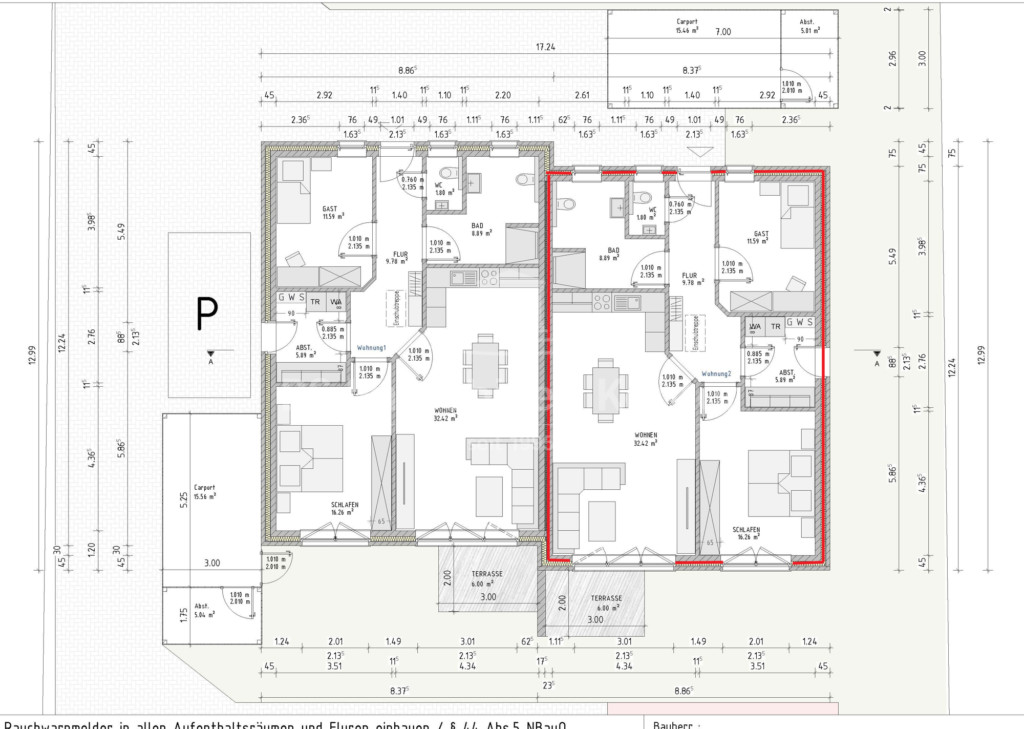 Gebäude: EG: Flur/Diele, Gäste WC, Duschbad mit WC, Gästezimmer, HWR, offener Wohn-/Essbereich mit Küchenanschlüssen und Zugang zur Terrasse, Abstellraum, Schlafzimmer