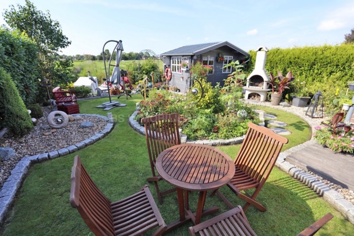 ca. 331 qm (Eigentumsgrundstück, Blockhaus, Bootsanleger, Garage mit elektrischem Sectionaltor, überdachte Terrasse ca. 6m x 4m)