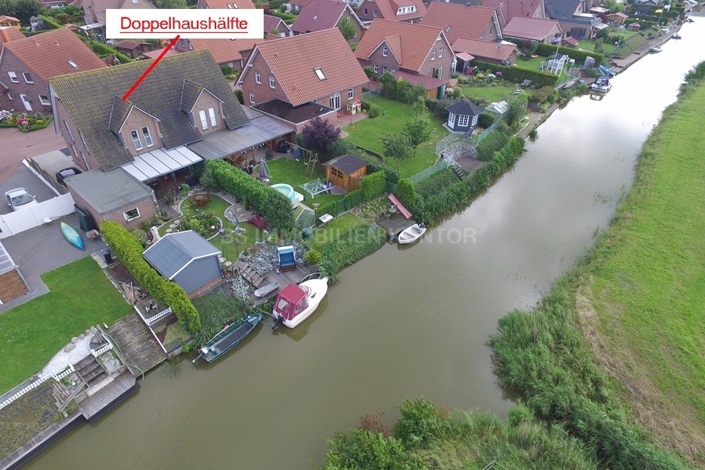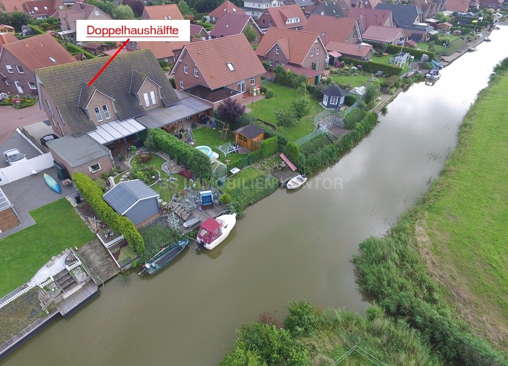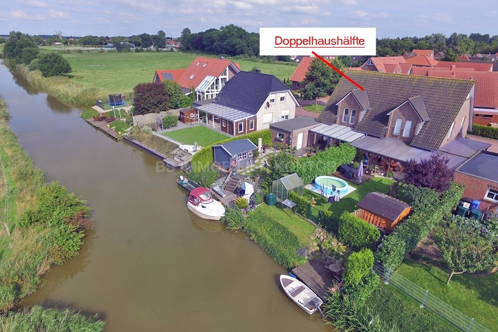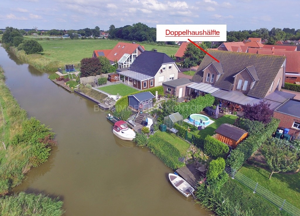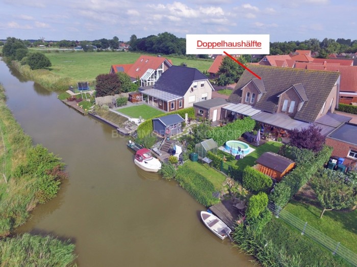 Diese top gepflegte Doppelhaushälfte liegt in einer traumhaften Kanallage von Larrelt und wurde 2005 in Massivbauweise mit einem Satteldach von einer renommieren, ortsansässigen Firma erstellt. Das Eigentumsgrundstück bemisst ca. 336 qm und besticht durch eine liebevoll angelegte Gartenanlage, einer überdachten Terrasse, einem Bootsanleger sowie einem Blockhaus. Die Räumlichkeiten sind hell & freundlich und strahlen eine gemütliche Atmosphäre aus. Beheizt wird das Objekt durch eine Gas-Zentral-Heizung (Fußbodenerwärmung: EG: Küche, Flur, Wohnzimmer; OG: Bad). Die weißen Kunststofffenster sind isolierverglast und mit Jalousien ausgestattet. Hervorzuheben ist die idyllische Kanallage, der freie Blick im rückwärtigen Bereich und der top gepflegte Zustand der Immobilie. Ein Objekt für Menschen die Wert auf eine direkte Kanallage legen und die ruhige, zentrale Wohnlage zu schätzen wissen.