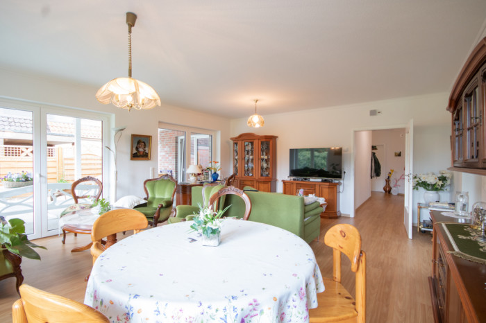 In einer ruhigen, zentralen Lage von Varel, befindet sich dieser neuwertige Bungalow in einem gepflegten Allgemeinzustand. Das großzügige Grundstück bemisst eine Fläche von ca. 983qm und ist mit einer Garage versehen. Sowohl der hochw. Wintergarten (Fa. Renken & Pollmann, Neupreis: 35.000€) als auch die überdachte Terrasse im rückwärtigen Bereich bieten einen freien Blick in die wunderschön gestaltete Garten- und Teichanlage. Der offene Deckenbereich im Gästezimmer bietet einen freien Blick in den Sternenhimmel. Beheizt wird das Objekt durch eine Gas-Z.-Heizung (Fußbodenheizung). Eine effiziente Warmwasseraufbereitung erfolgt durch eine Solarthermie. Die weißen Kunststofffenster sind 3-fach verglast. Ein Objekt für Menschen die Ihr Kapital sicher anlegen möchten und auf lange Sicht ihren Wohnsitz im wunderschönen Friesland nahe der Küste verlegen möchten.