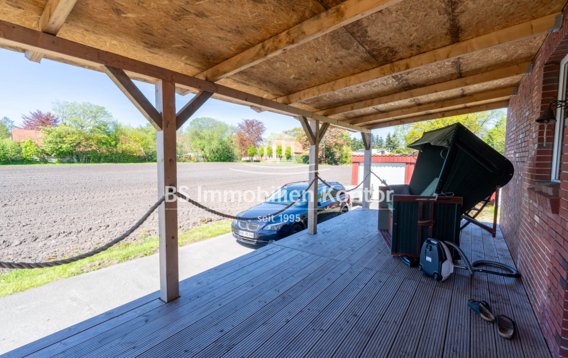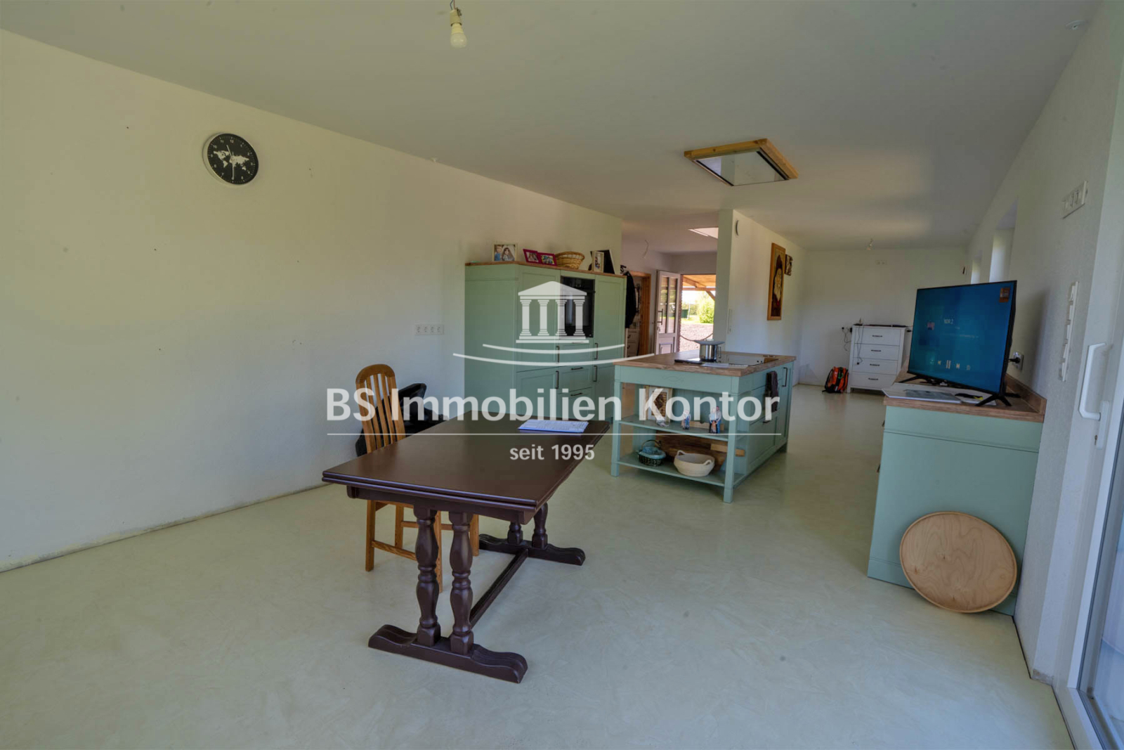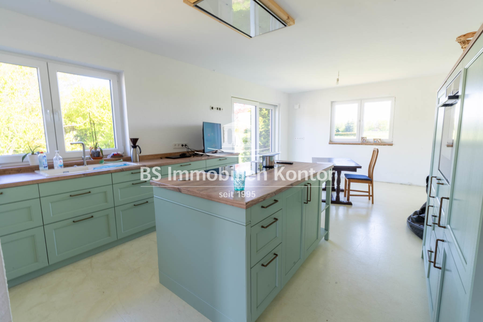 Dieses Immobilienangebot präsentiert sich in einer ruhigen Wohnlage von Großheide und ist kurzfristig bezugsfrei. Der sanierte Bungalow wurde 1964 in konventioneller Massivbauweise mit einem Walmdach erstellt. In 2021 wurde die Immobilie aufwendig kernsaniert (vgl. Aufstellung). Vom einladenden Eingangsbereich eröffnet sich Ihnen der lichtdurchflutete Wohn- und Essbereich mit integrierter Küche und Kochinsel. Die direkt angegliederte Terrasse begeistert mit einem freien Blick auf Wiesen & Weiden. Mit einer ebenerdigen Wohnfläche von ca. 92qm bietet Ihnen diese Immobilie ausreichend Platz und Entfaltungsmöglichkeiten. Das Obergeschoss bietet Ihnen eine Ausbaureserve von ca. 45qm. Das naturbelassene Eigentumsgrundstück bemisst ca. 1.500qm und ist über eine eigene Zuwegung von der Hauptstraße erreichbar. Die weißen Kunststofffenster sind dreifachverglast und in den Schlafräumen mit Jalousien ausgestattet. Beheizt wird die Immobilie mit einer Erdwärmepumpe (BJ: 2021). Im gesamten Erdgeschoss ist eine Fußbodenheizung verlegt. Fazit: Ein sofort bezugsfreier, hochwertig modernisierter Bungalow in attraktiver Lage – ideal für Paare, kleine Familien oder Ruhesuchende mit Platzbedarf. Überzeugen Sie sich selbst bei einer persönlichen Besichtigung!