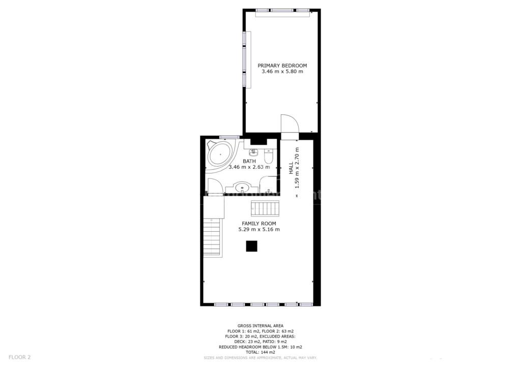 Offener Wohnbereich, Vollbad, Flur/Diele, Schlafzimmer