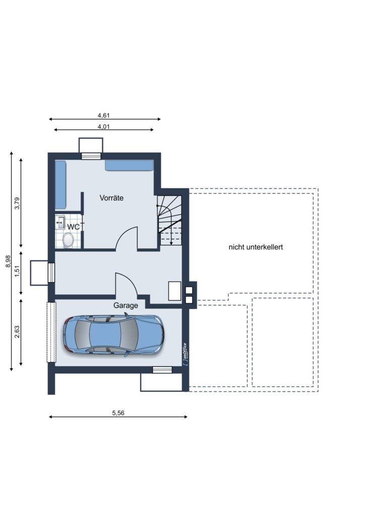 KG: Flur/Diele, Dusche mit WC, HWR, 2x Vorratsraum