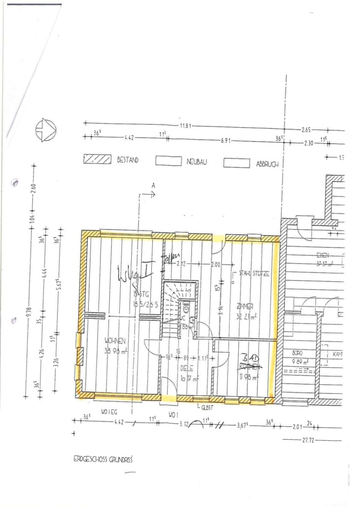 EG: Flur/Diele, Wohnzimmer, Werkstatt, Küche, Gäste-WC, offener Wohn- und Essbereich