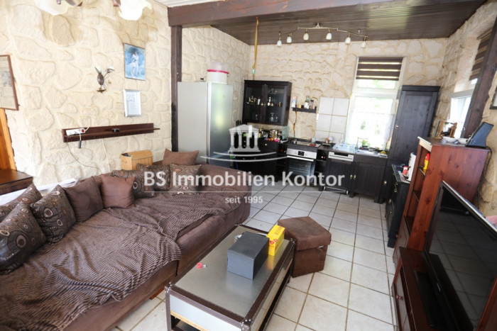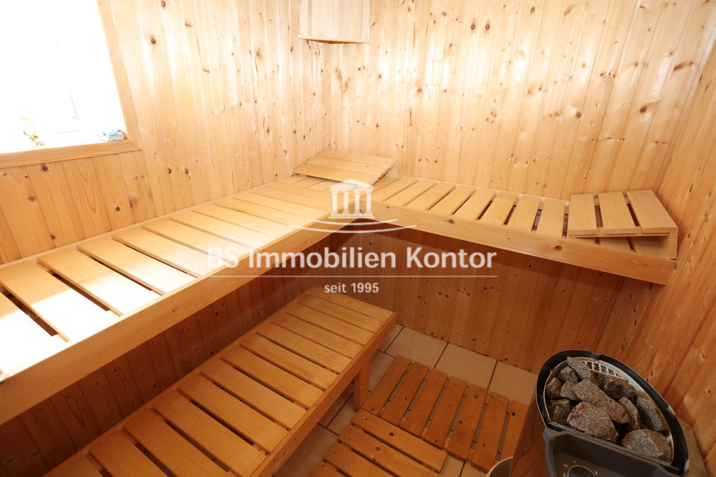 ELW EG: Flur/Diele, Schlafzimmer, Wohnzimmer, kl. Küche, Duschbad mit WC, HWR, Werkstatt, Sauna