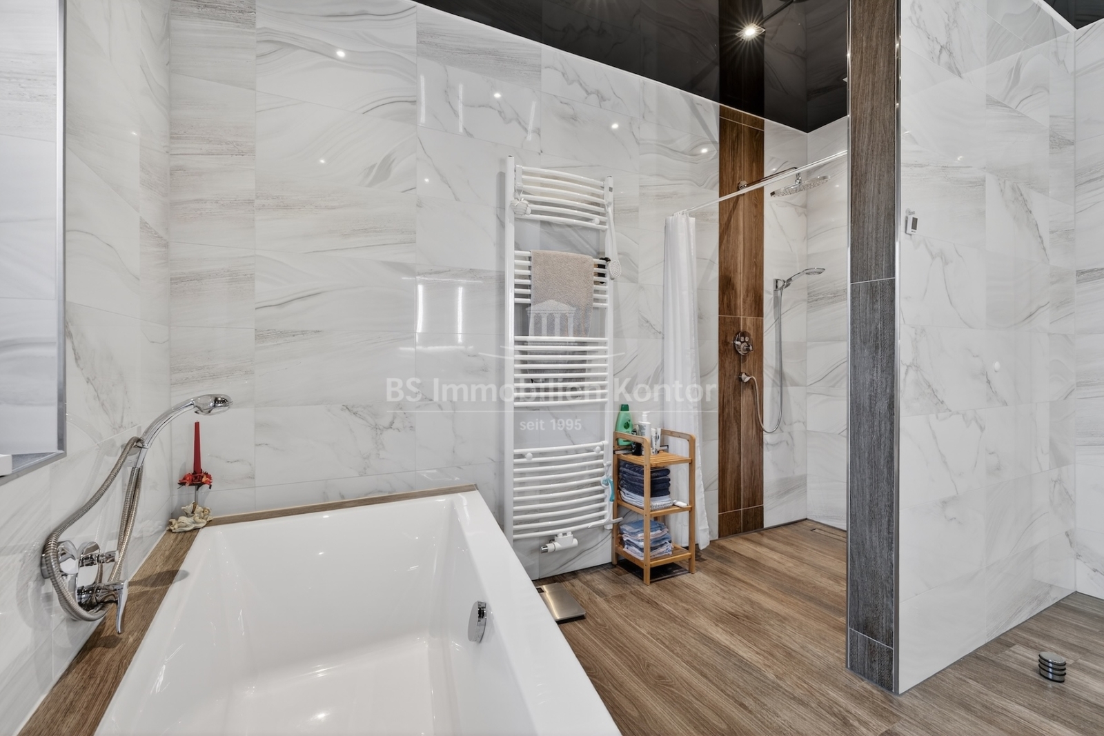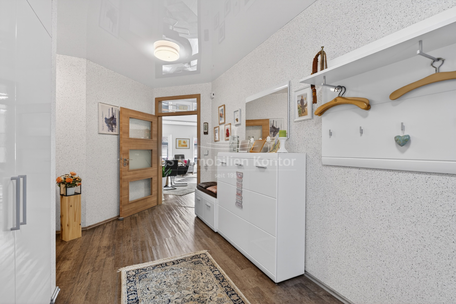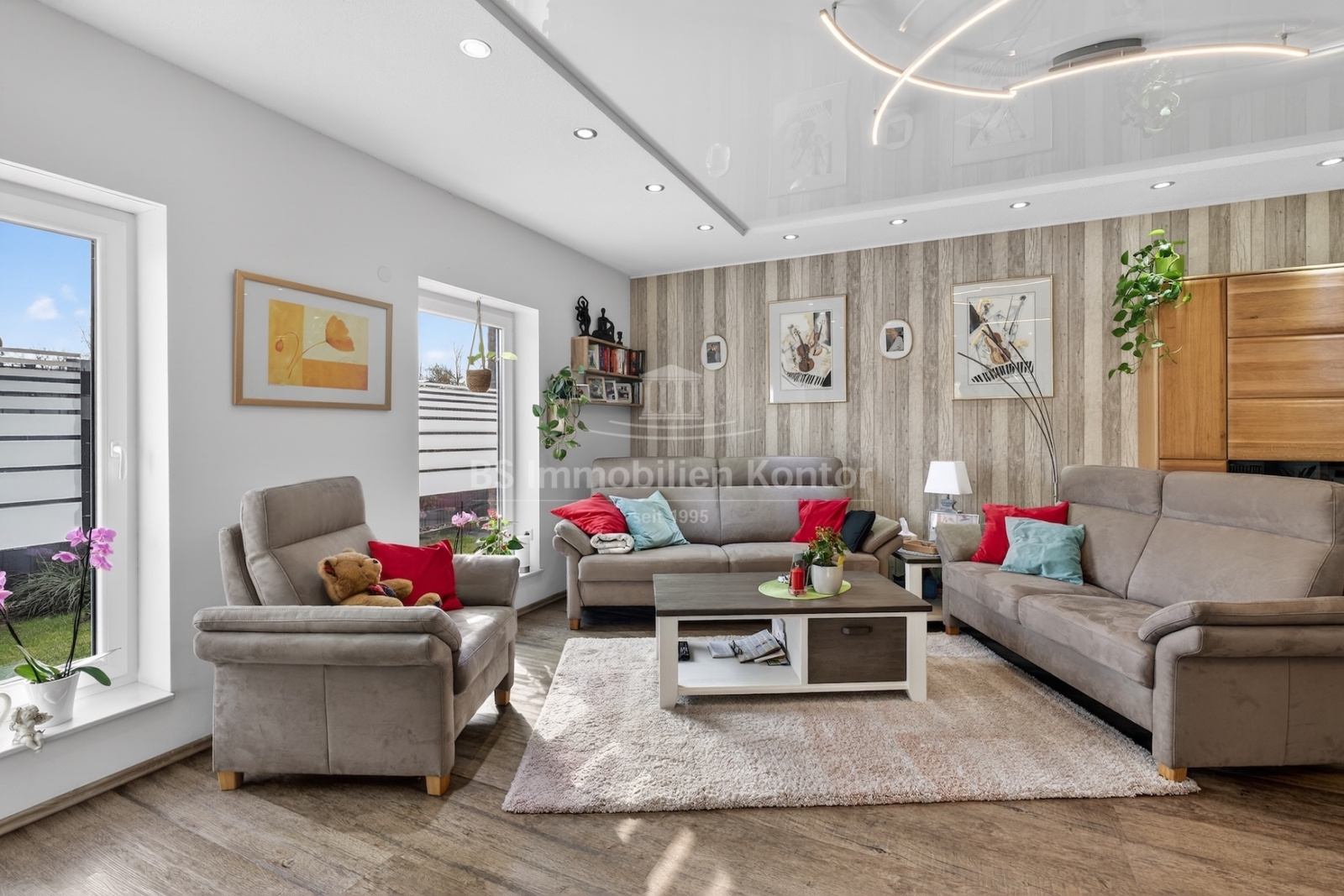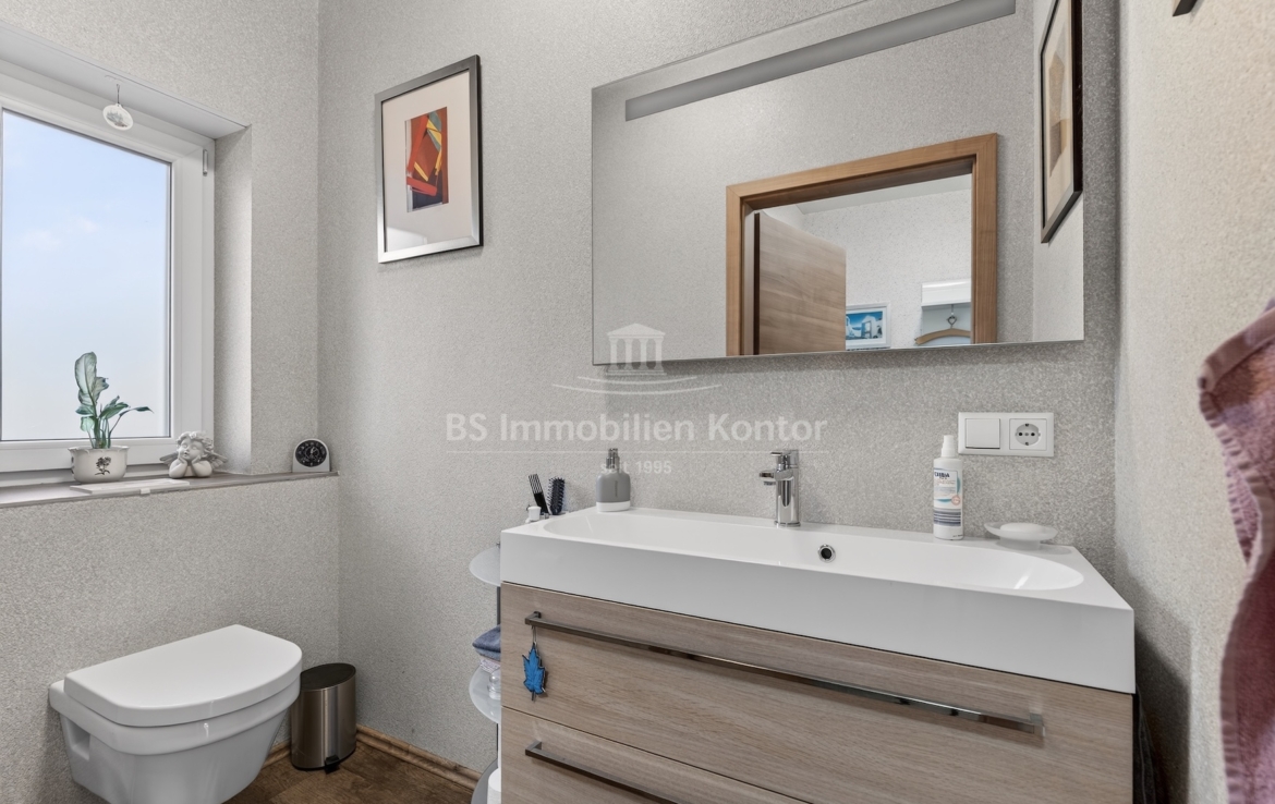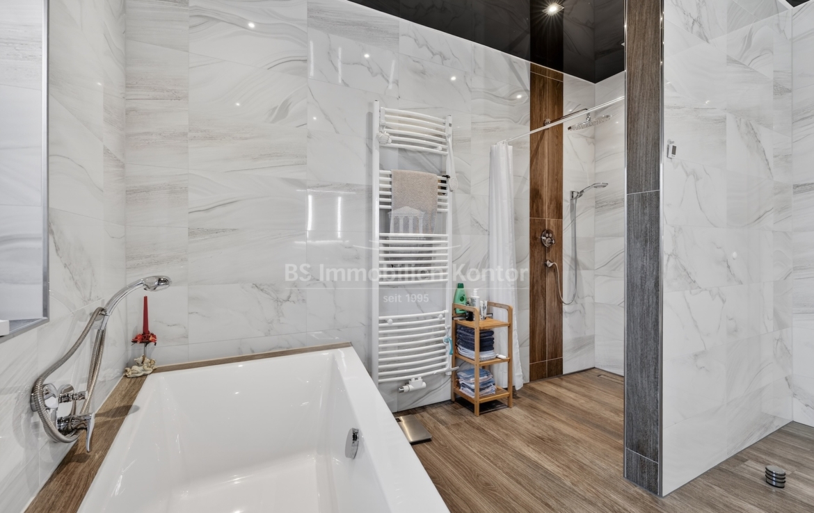 Dieser moderne und gepflegte Bungalow aus dem Baujahr 2016 befindet sich in ruhiger Wohnlage von Papenburg, in zweiter Reihe auf einem ca. 589 m² großen Grundstück. Die Immobilie überzeugt durch eine durchdachte Raumaufteilung sowie eine hochwertige und zeitgemäße Ausstattung. Drei Schlafzimmer sowie ein separates Gäste-WC gehen direkt vom Flur ab. Das Herzstück des Hauses bildet die offene Wohnküche mit angrenzendem Wohnbereich. Ein Kaminofen sorgt hier für eine besonders behagliche Wohnatmosphäre und lädt zum Verweilen ein. Das großzügige Badezimmer ist modern ausgestattet und verfügt über eine Badewanne, eine Dusche, zwei Waschbecken sowie ein WC. Ein praktischer Hauswirtschaftsraum bietet zusätzlichen Stauraum und ermöglicht einen direkten Zugang zur Garage. Vom Wohnbereich aus gelangt man auf die große, überdachte Terrasse, die viel Platz bietet und zum Verweilen im Freien einlädt. Die dreifach verglasten Fenster, elektrischen Jalousien sowie die im gesamten Haus verlegte Fußbodenheizung sorgen für hohen Wohnkomfort. Die breiten Türen unterstreichen den modernen Charakter des Hauses. In der Garage ist eine Wallbox für Elektrofahrzeuge installiert, ergänzt durch eine separaten Abstellraum. Auf dem Dach befinden sich Warmwasserkollektoren, die zur Unterstützung der Warmwasseraufbereitung beitragen und die Energieeffizienz des Hauses zusätzlich verbessern. Eine Immobilie für Menschen, die Wert auf Komfort und Qualität legen: Moderner Bungalow mit Terrasse und Garage in Papenburg bietet durchdachte Räume, hochwertige Ausstattung und eine ruhige Lage – ideal für entspanntes Wohnen.