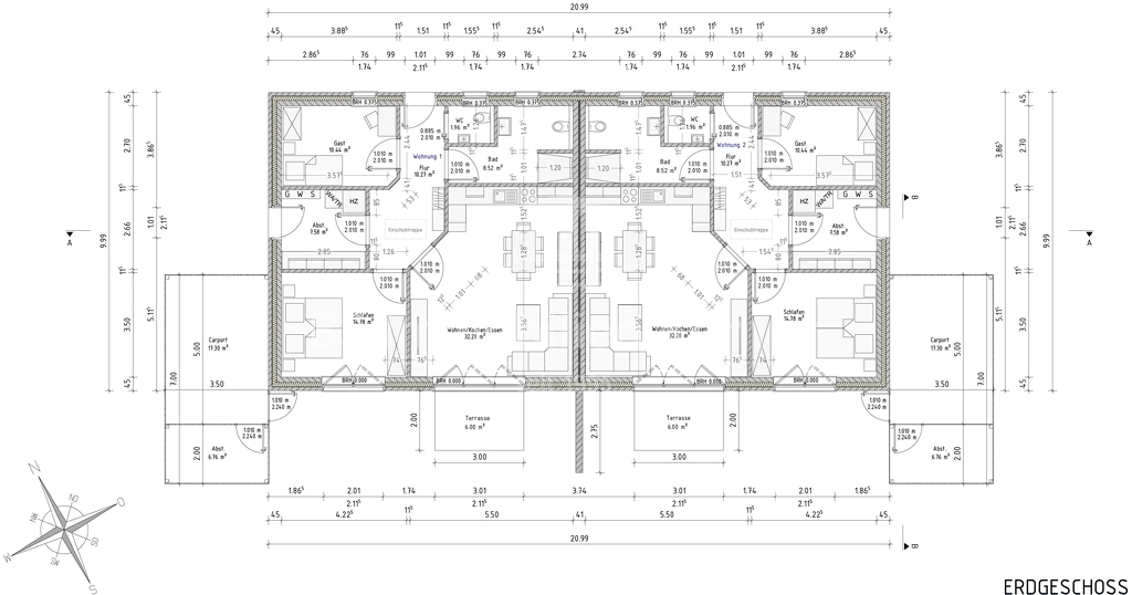 EG:Flur/Diele, Gäste WC, Duschbad mit WC, Gästezimmer, HWR, offener Wohn-/Essbereich mit Küchenanschlüssen und Zugang zur Terrasse, Abstellraum, Schlafzimmer