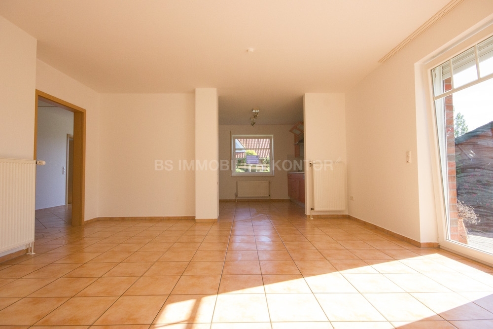 EG: Flur, offener Wohn-/Essbereich mit kl. Abstellraum, Schlafzimmer, Gästezimmer, Bad, Gäste WC, HWR
