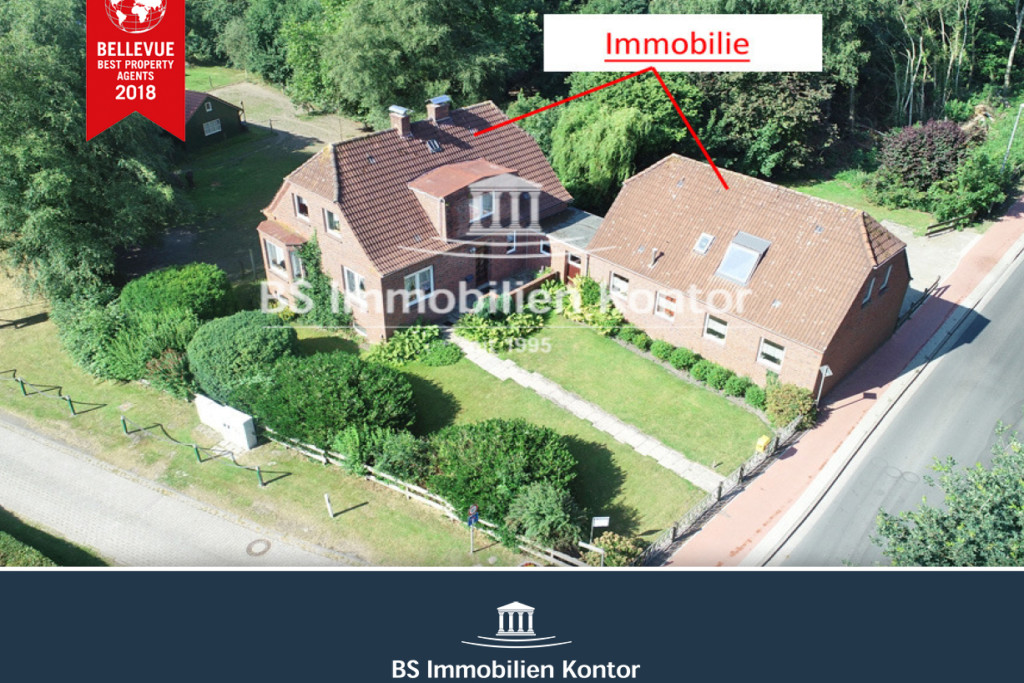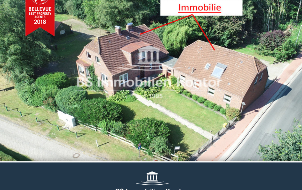 Dieses großzügige Einfamilienhaus liegt in einer zentralen Wohnlage von Groothusen (Nähe Greetsiel) und wurde ca. 1940 in Massivbauweise mit einem Satteldach erstellt. Im Jahr 1971 wurde das angrenzende Nebengebäude mit einer Doppelgarage sowie einer Einliegerwohnung errichtet. Das Grundstück bemisst ca. 1.450 qm und verfügt über eine Gartenanlage. Beheizt wird das Objekt inkl. Anbau durch zwei Gas-Z.-Heizungen. Die weißen Kunststofffenster sind isolierverglast und teilweise mit Jalousien ausgestattet. Die Räumlichkeiten sind hell & freundlich und strahlen eine gemütliche Atmosphäre aus. Eine Immobilie für Menschen die die Küstenregion als Wohnort bevorzugen und Wert auf ein großzügiges Platzangebot legen.